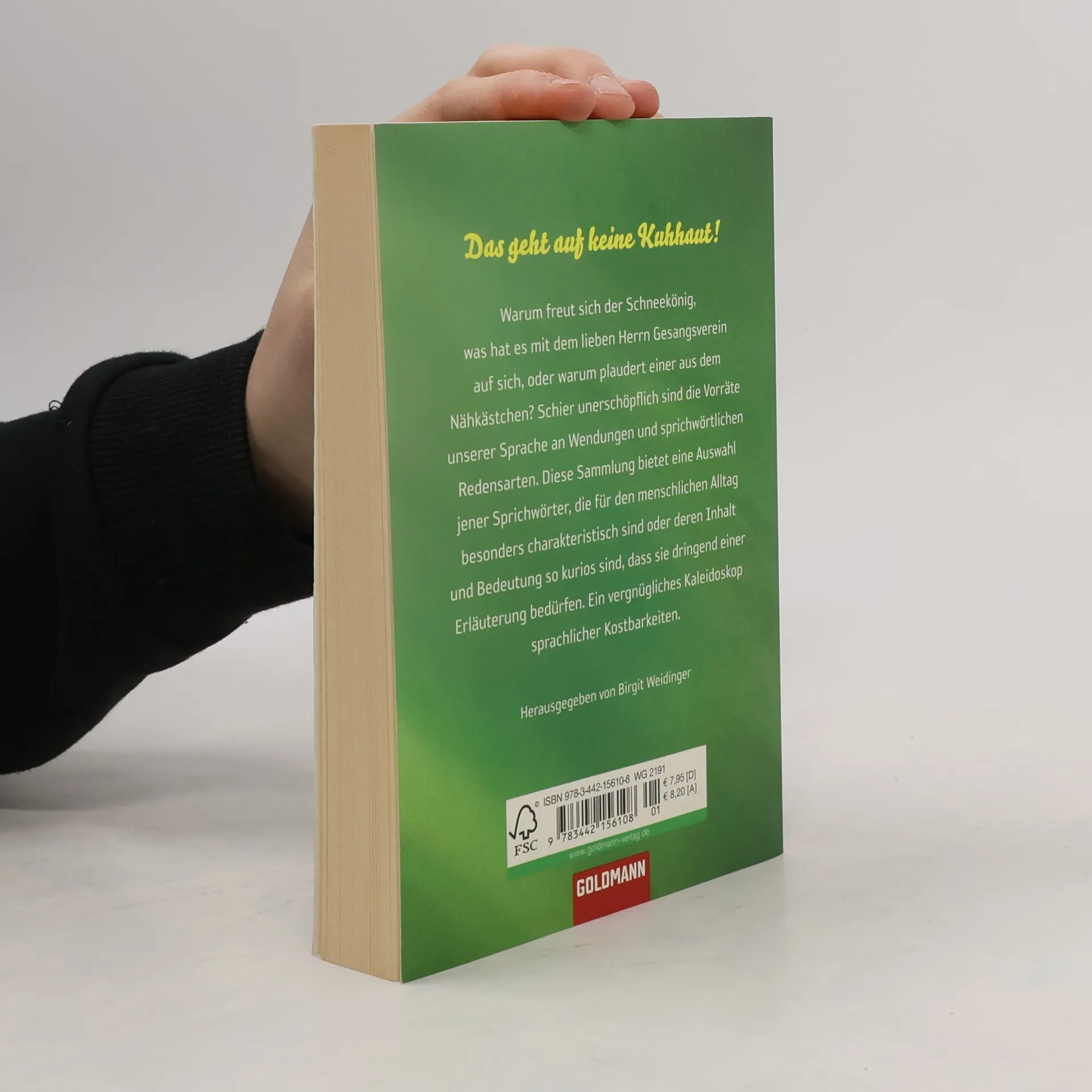 Kuriose Sprichwörter und Redewendungen unterhaltsam erklärt Warum freut sich der Schneekönig, was hat es mit dem lieben Herrn Gesangsverein auf sich, oder warum plaudert einer aus dem Nähkästchen? Schier unerschöpflich sind die Vorräte unserer Sprache an Wendungen und sprichwörtlichen Redensarten. Diese Sammlung bietet eine Auswahl jener Sprichwörter, die für den menschlichen Alltag besonders charakteristisch sind oder deren Inhalt und Bedeutung so kurios sind, dass sie dringend einer Erläuterung bedürfen. Ein vergnügliches Kaleidoskop sprachlicher Kostbarkeiten. Ein wunderbares Geschenkbuch zum Nachschlagen und Schmökern