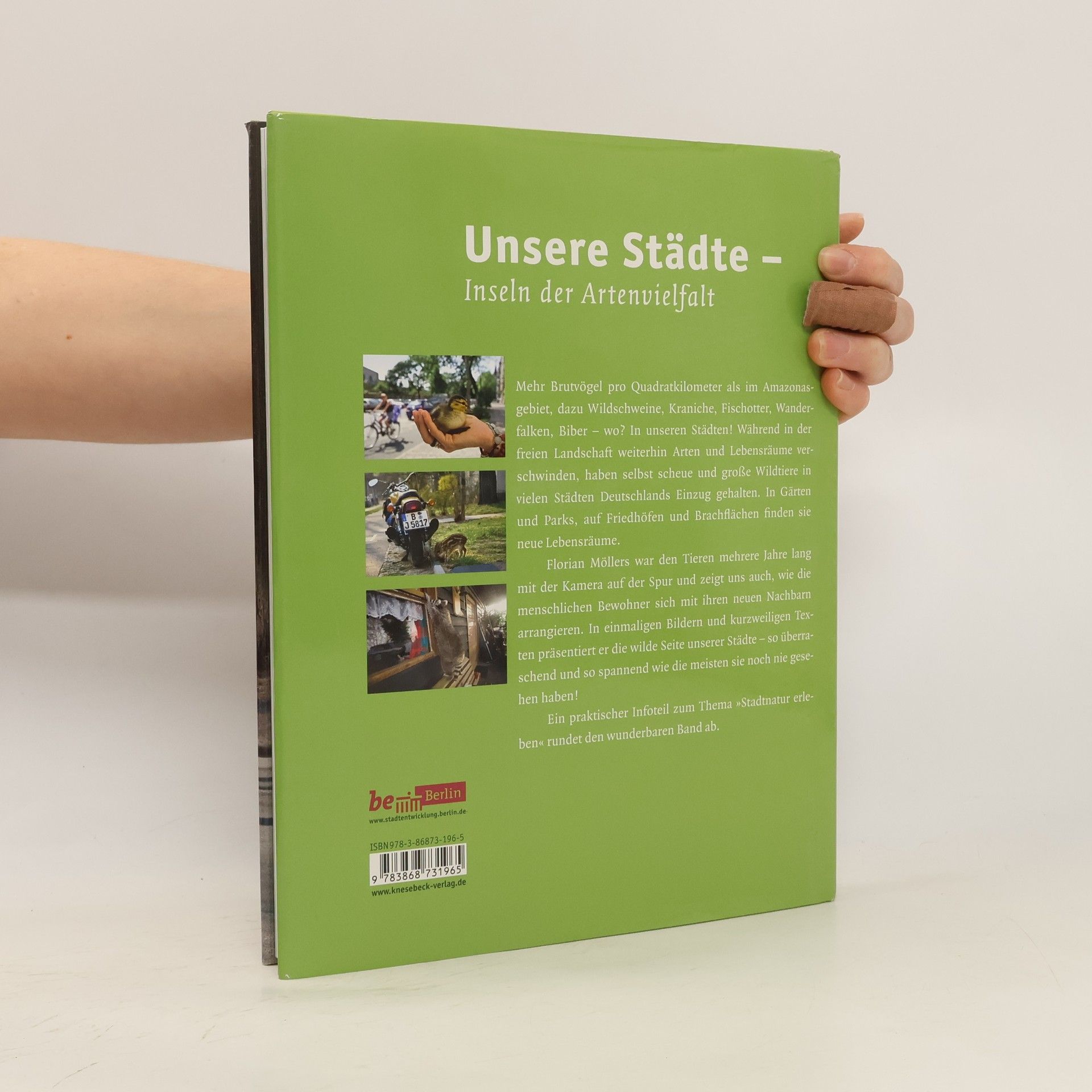 Die Taube auf dem Dach, die Ente im Park und die Maus im Keller sind uns als Stadtbewohner vertraut. Doch wenn uns plötzlich eine Wildschweinfamilie vor dem Supermarkt über den Weg läuft, wenn ein Wanderfalke über der City kreist und die Füchse in unserem Vorgarten stöbern, sieht das anders aus. Wilde Tiere haben in vielen Städten Deutschlands Einzug gehalten. Florian Möllers zeigt uns, warum die Tiere zunehmend in Städten einen komfortablen Lebensraum finden und wie die Menschen damit umgehen. Seine Landschaftsaufnahmen aus der Hauptstadt sind überraschend stimmungsvoll, seine Tierbilder und Stadtbeobachtungen häufig voller Komik. Ein praktischer Infoteil zum Thema 'Stadtnatur erleben' rundet neben den zahlreichen überraschenden Bilddokumenten diesen wunderbaren Band ab.