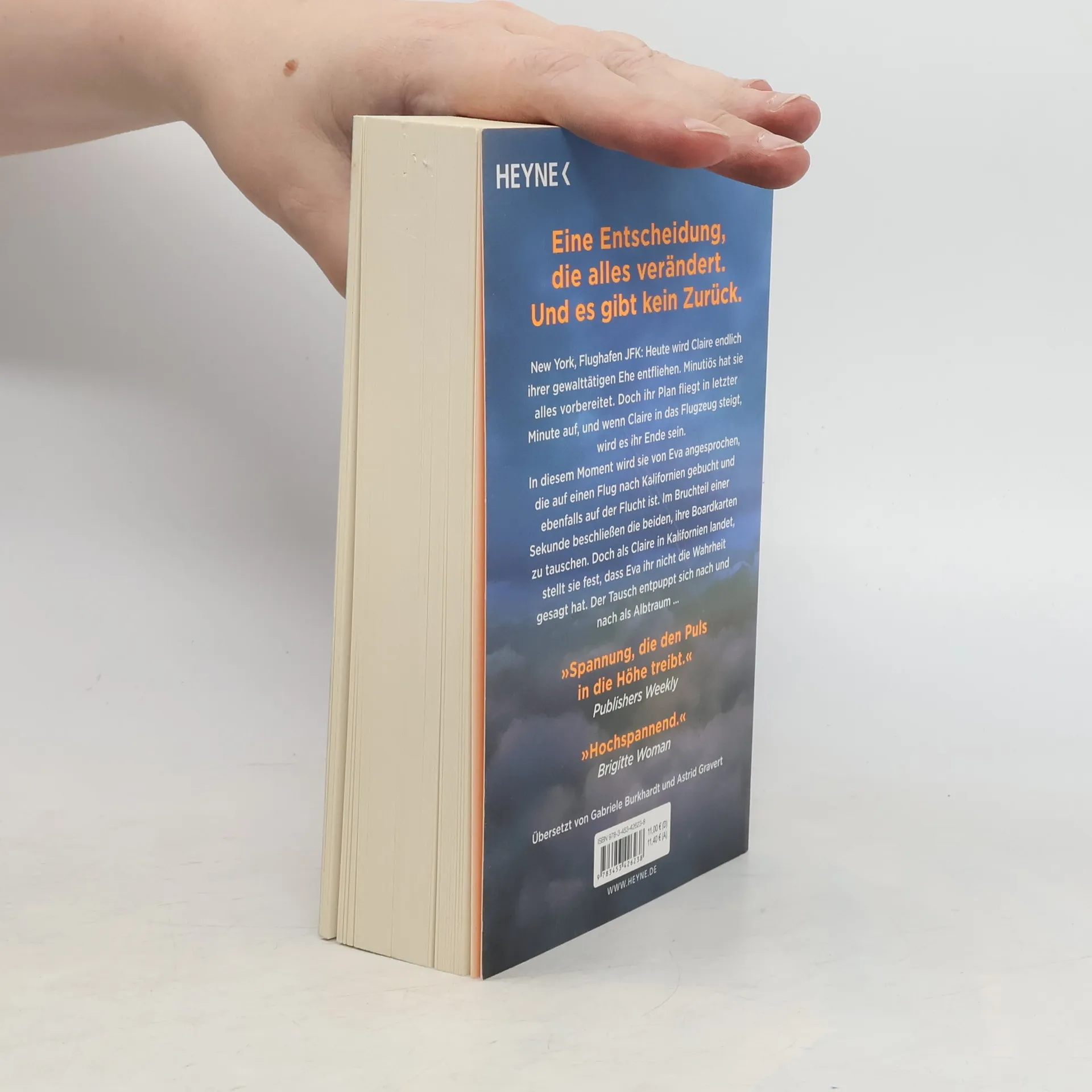 Zwei Frauen auf der Flucht. Eine Entscheidung, die alles verändert. Und kein Weg zurück. New York, Flughafen JFK: Heute wird Claire endlich ihrer gewalttätigen Ehe entfliehen. Minutiös hat sie alles vorbereitet. Doch ihr Plan fliegt in letzter Minute auf, und wenn Claire in das Flugzeug steigt, wird es ihr Ende sein. In diesem Moment wird sie von Eva angesprochen, die auf einen Flug nach Kalifornien gebucht und ebenfalls auf der Flucht ist. Im Bruchteil einer Sekunde beschließen die beiden, ihre Bordkarten zu tauschen. Doch als Claire in Kalifornien landet, stellt sie fest, dass Eva ihr nicht die Wahrheit gesagt hat. Der Tausch entpuppt sich nach und nach als Albtraum ...