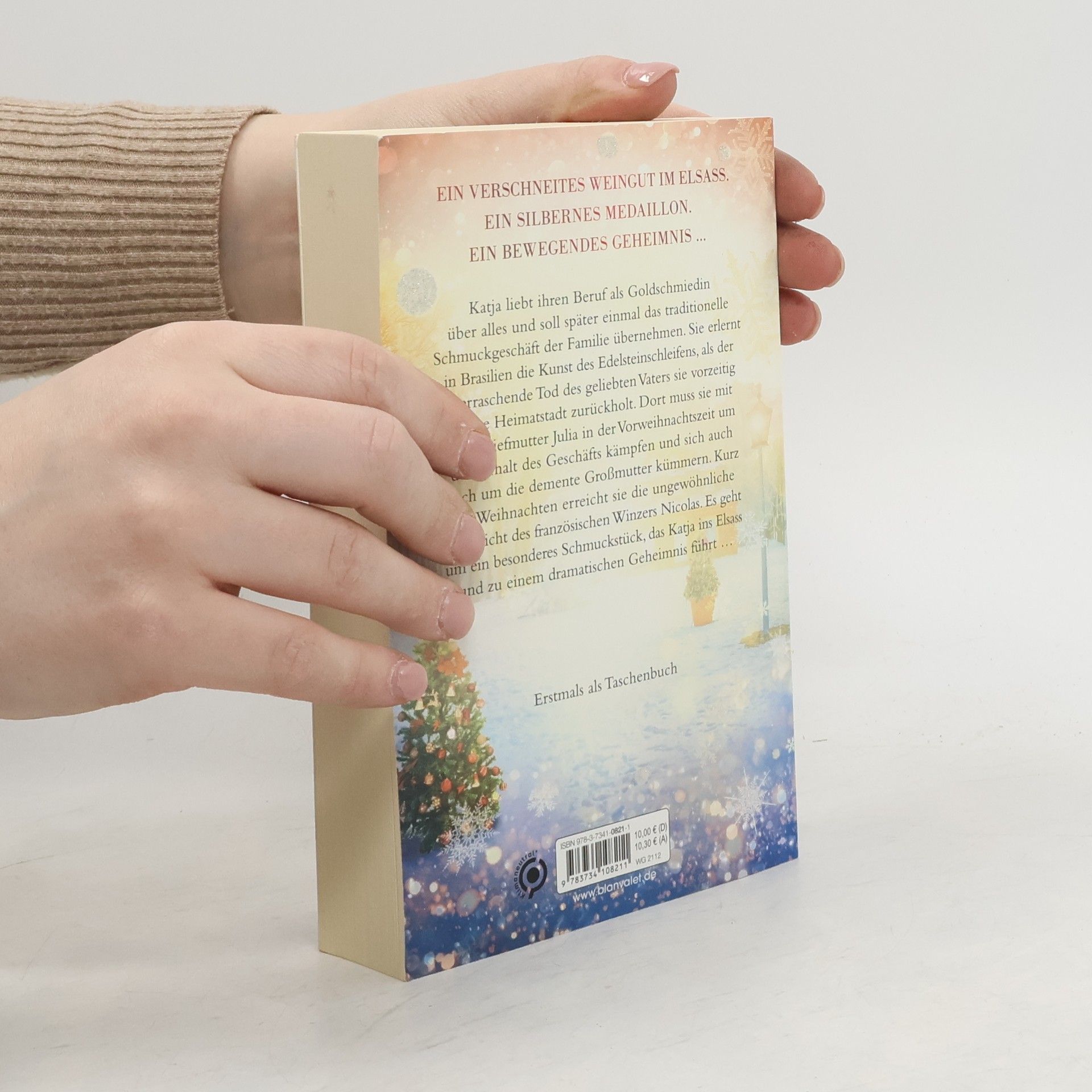 Ein verschneites Weingut im Elsass. Ein silbernes Medaillon. Ein bewegendes Geheimnis. Katja liebt ihren Beruf als Goldschmiedin über alles und soll später einmal das traditionelle Schmuckgeschäft der Familie übernehmen. Sie erlernt in Brasilien die Kunst des Edelsteinschleifens, als der überraschende Tod des geliebten Vaters sie vorzeitig in ihre Heimatstadt zurückholt. Dort muss sie mit ihrer Stiefmutter Julia in der Vorweihnachtszeit um den Erhalt des Geschäfts kämpfen und sich auch noch um die demente Großmutter kümmern. Kurz vor Weihnachten erreicht sie die ungewöhnliche Nachricht des französischen Winzers Nicolas. Es geht um ein besonderes Schmuckstück, das Katja ins Elsass und zu einem dramatischen Geheimnis führt … Angelika Schwarzhubers bezaubernde Weihnachtsromane bei Blanvalet: 1. Der Weihnachtswald 2. Das Weihnachtswunder3. Das Weihnachtslied