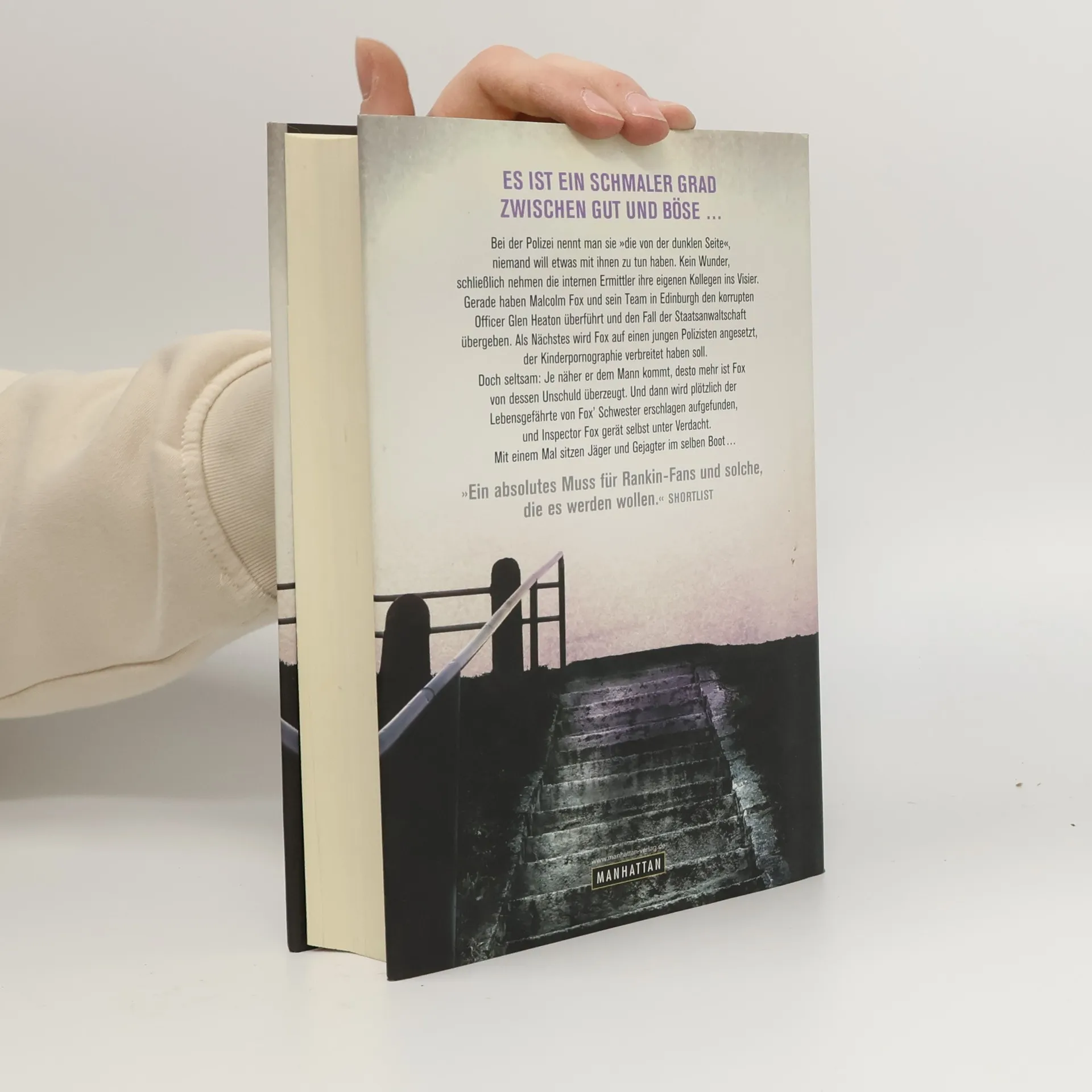 Ein neuer Ermittler, eine brillante Serie: der erste Fall für Malcolm Fox Die Beamten der 'Internen Ermittlungen' haben innerhalb der Polizei keinen leichten Stand, schließlich nehmen sie ihre eigenen Kollegen ins Visier. Daher will auch bei Malcolm Fox und seinem Team in Edinburgh keine Feierstimmung aufkommen, als sie wieder einmal einen korrupten Officer überführen konnten. Auch private Probleme machen Fox das Leben schwer: Sein zunehmend gebrechlicher Vater Mitch lebt in einem Pflegeheim, und Schwester Jude deckt ihren Lebenspartner, der sie vermutlich schlägt. So stürzt sich Fox nur zu gern in den nächsten Fall: Ein Polizist steht unter Verdacht, Kinderpornographie zu verbreiten, und Fox wird auf ihn angesetzt. Doch je näher er dem Mann kommt, desto mehr ist er von dessen Unschuld überzeugt. Und als sich Fox plötzlich mit dem Vorwurf des Mordes konfrontiert sieht, sitzen Jäger und Gejagter im selben Boot …