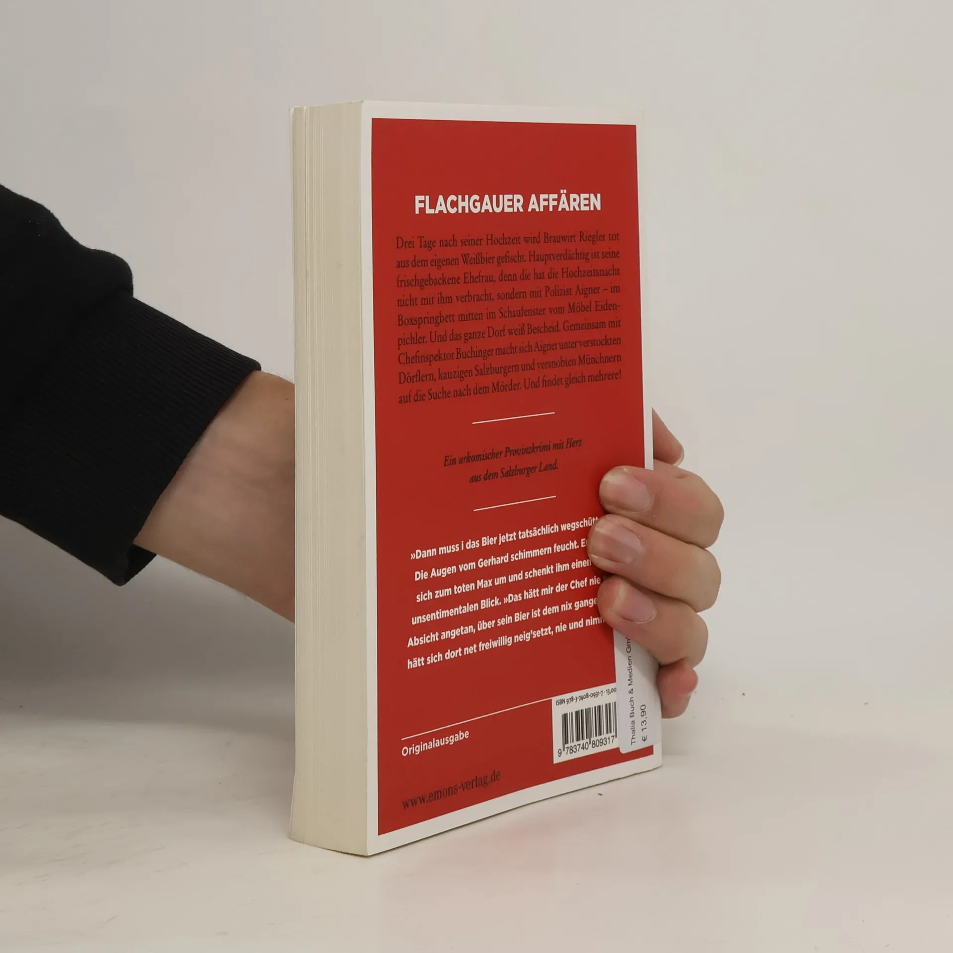 Augenzwinkernder Humor mit viel Herz und österreichischem Charme. Drei Tage nach seiner Hochzeit wird Brauwirt Riegler tot aus dem eigenen Weißbier gefischt. Hauptverdächtig ist seine frischgebackene Ehefrau, denn die hat die Hochzeitsnacht nicht mit ihm verbracht, sondern mit Polizist Aigner – im Boxspringbett mitten im Schaufenster vom Möbel Eidenpichler. Und das ganze Dorf weiß Bescheid. Gemeinsam mit Chefinspektor Buchinger macht sich Aigner unter verstockten Dörflern, kauzigen Salzburgern und versnobten Münchnern auf die Suche nach dem Mörder. Und findet gleich mehrere!