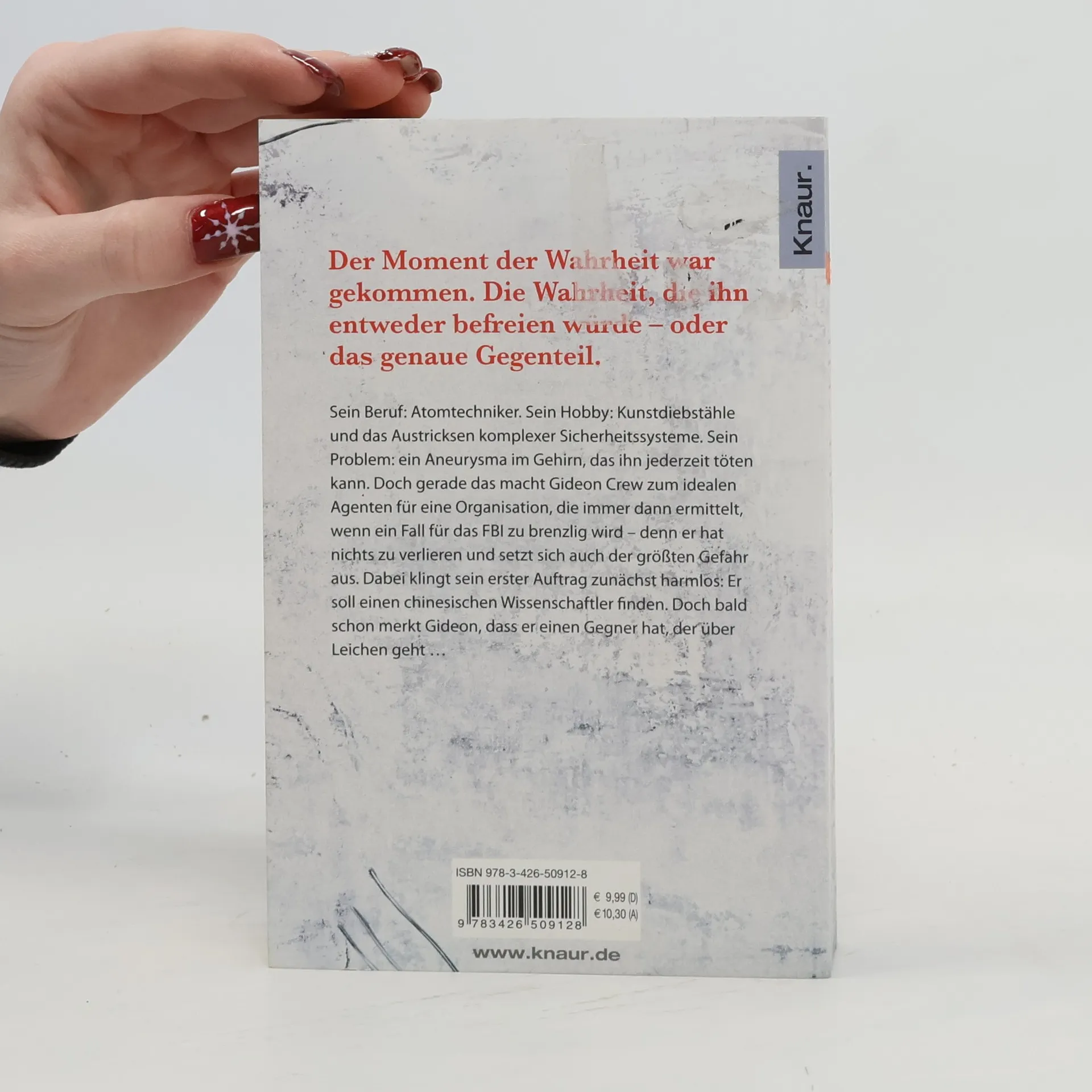 Er ist brillant. Er kennt keine Angst. Und er ist eine tickende Zeitbombe: Der geniale Stratege und Gelegenheitsgauner Gideon Crew hat ein Aneurysma im Gehirn, das ihn jederzeit töten kann. Doch gerade das macht ihn zum idealen Agenten für eine Geheimorganisation, die immer dann zu ermitteln beginnt, wenn ein Fall für die US-Behörden zu brenzlig wird – denn Gideon hat nichts zu verlieren und setzt sich bereitwillig auch der größten Gefahr aus. Sein erster Auftrag: Er soll herausfinden, was ein chinesischer Wissenschaftler soeben ins Land geschmuggelt hat. Ist der Mann ein Überläufer – oder plant er den Bau einer Superwaffe, um Amerika anzugreifen? Bei seinen Ermittlungen merkt Gideon schnell, dass noch jemand anderer hinter dem Wissenschaftler und seinem Geheimnis her ist – und bereit, über Leichen zu gehen …