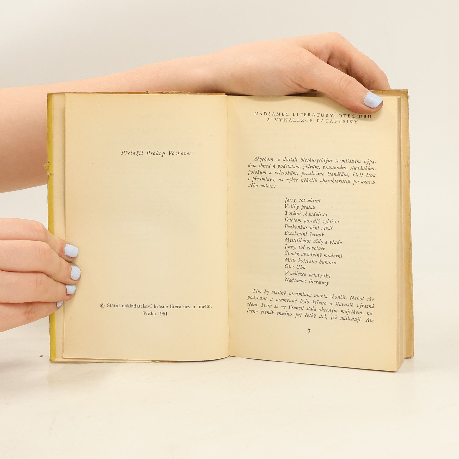 Obsahuje hry a prózy: Ubu králem Ubu spoutaný Ubu na homoli Dodatky Skutky a názory doktora Faustrolla, patafyzika Nadsamec literatury, otec Ubu, zakladatel patafyziky - těmito slovy začíná předmluva Ludvíka Kundery, která vystihuje dokonale osobnost Alfreda Jarryho, která se prolíná do jeho díla, které ani po více jak 100 letech neztratilo svou aktuálnost a schopnost oslovit diváka či čtenáře. Světová četba sv. 258