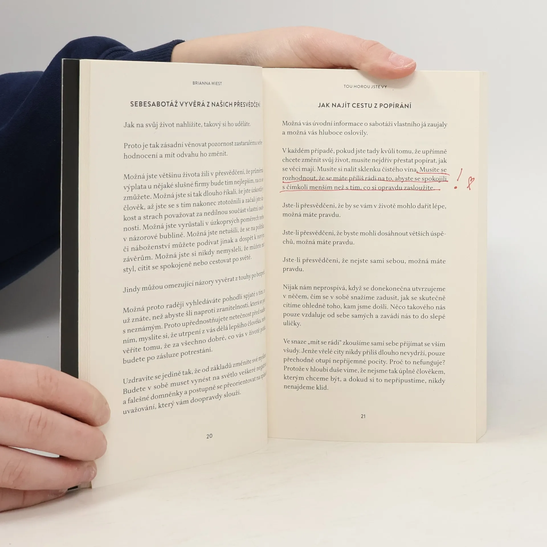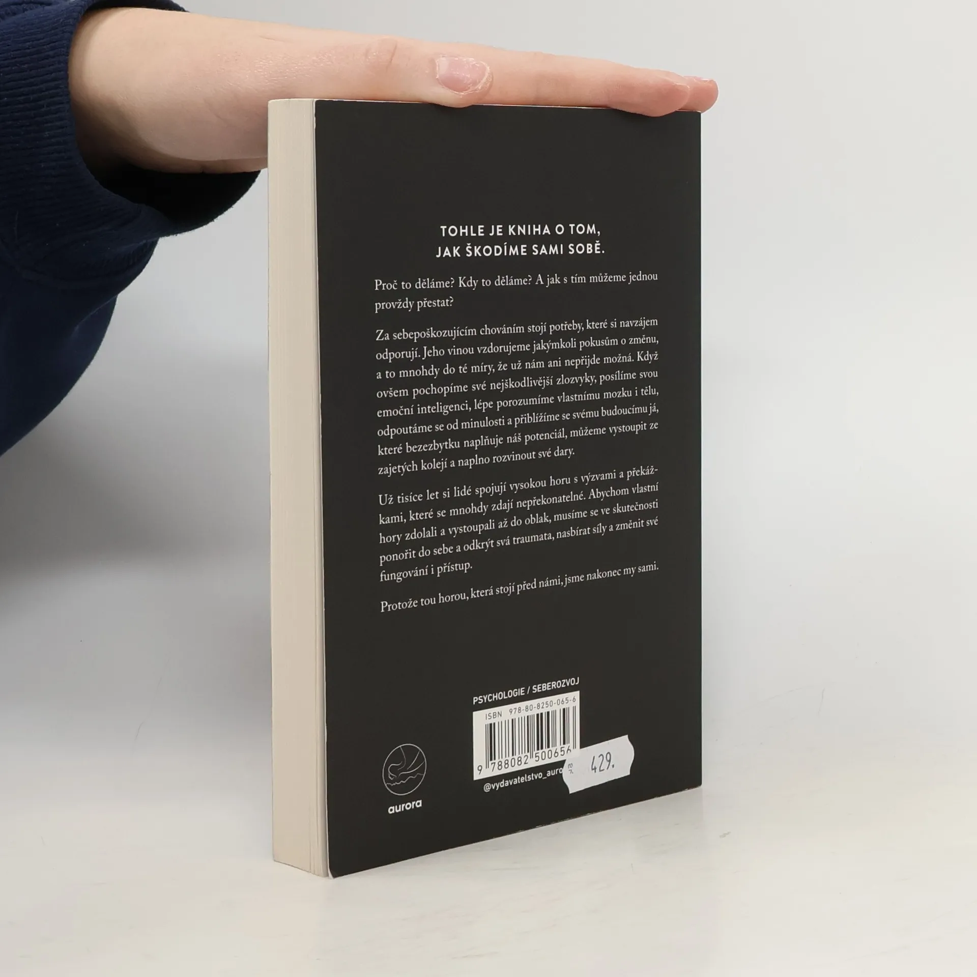 Tato kniha se zaměřuje na to, jak si nevědomky škodíme a proč k tomu dochází. Kdy se sebepoškozující chování objevuje a jak ho můžeme nadobro překonat? Jeho příčinou jsou protichůdné potřeby, které nás často brzdí ve snaze změnit svůj život, až si začneme myslet, že změna není možná. Pokud se však dokážeme podívat na své škodlivé zvyky zblízka, zvýšit svou emoční inteligenci, lépe pochopit fungování vlastního těla a mysli, odpoutat se od minulosti a přiblížit se své budoucí verzi, která plně využívá svůj potenciál, můžeme se osvobodit z těchto vzorců chování a rozvinout své schopnosti naplno. Lidé si již tisíce let spojují vysoké hory s překážkami, které se zdají nepřekonatelné. Abyste však zdolali svou vlastní horu a dosáhli vrcholu, musíte nejprve zaměřit pohled do nitra, odhalit svá traumata, nabrat sílu a změnit svůj přístup. Protože tou největší horou, kterou musíte překonat, jste ve skutečnosti vy sami.