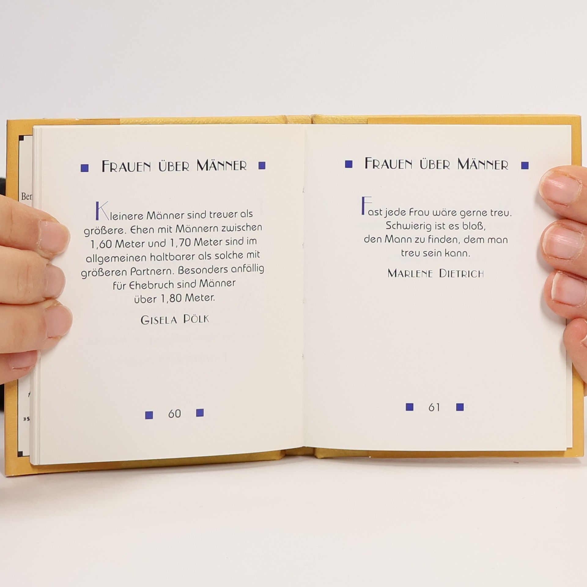 Männer. Sie mögen noch so unreif, unzuverlässig oder schlichtweg unmöglich sein, sie werden trotz alledem geliebt. Dieses Bändchen bringt eine Auswahl humorvoller, tiefsinniger und zuweilen bissiger Anmerkungen von Frauen zum "starken Geschlecht"--Dust jacket.