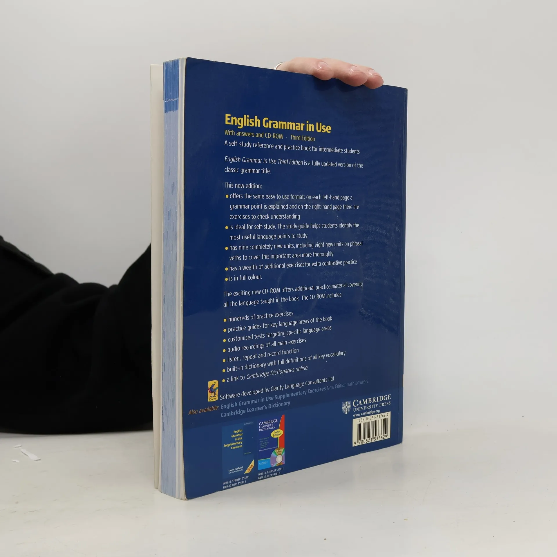 English Grammar in Use Third edition is a fully updated version of the classic grammar title. It retains all the key features of clarity and accessibility that have made this book so popular with students and teachers alike. This edition, with answers and CD-ROM, is ideal for self-study. The CD-ROM includes hundreds of interactive exercises to reinforce the language learned in the book.
