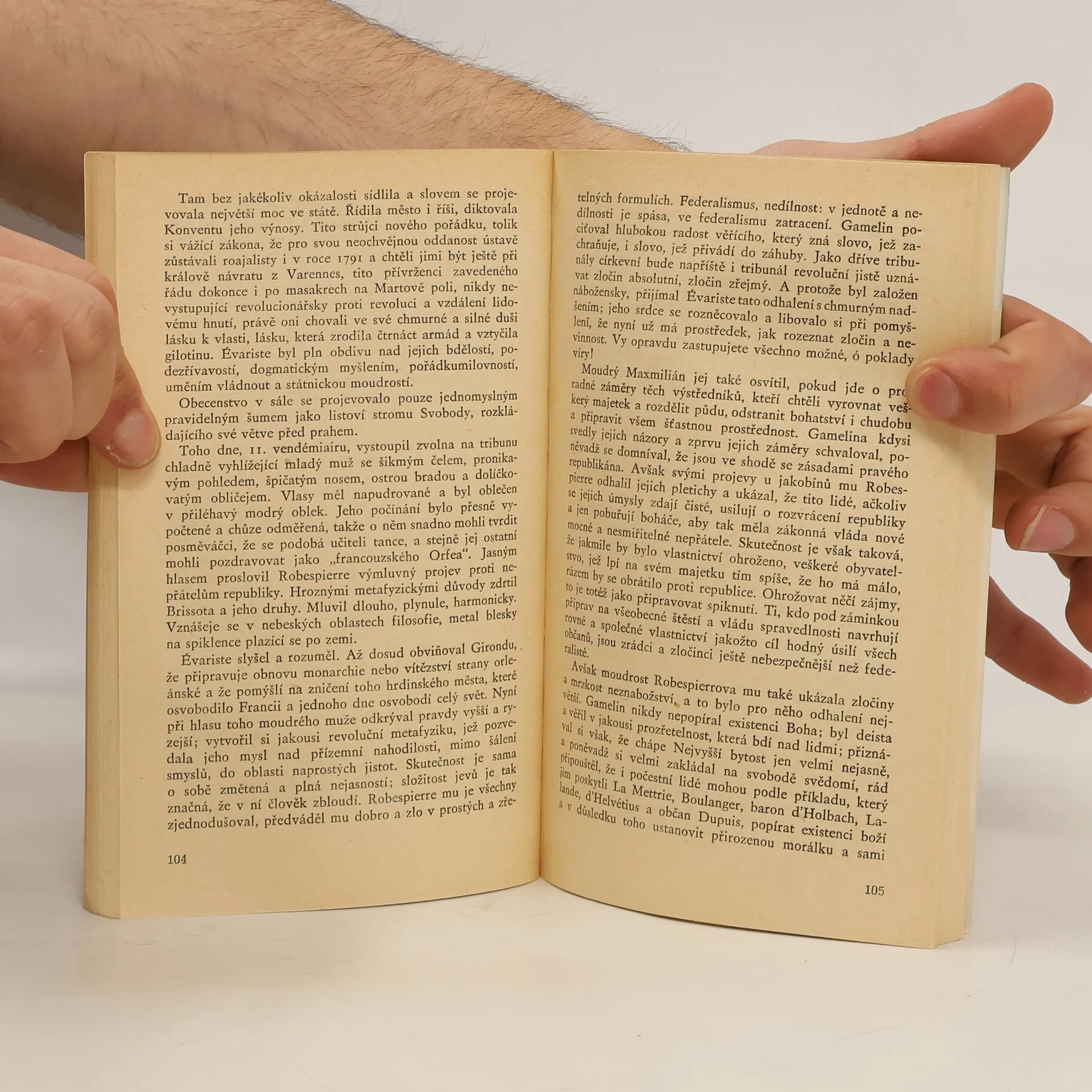 Román kritizující revoluční fanatismus. Jde o jedno z autorových stěžejních děl, které nás svým námětem zavádí do časů Velké francouzské revoluce, do období vzestupu a pádu jakobínské diktatury a vlády Maxmiliána Robespierra. Ústřední postavou románu je mladý malíř Evariste Gamelin, který se proměňuje ve fanatického zastánce revolučního teroru, udává vlastní přátele i příbuzné a je i před popravou přesvědčen o své pravdě. Revoluce je zde líčena v jejím každodenním shonu, kdy nevládne poměrná jasnost historie, nýbrž často zmatek a nerozvážnost přítomnosti. Bohové žízní a lidská krev jim platí na obou znepřátelených stranách svou daň.