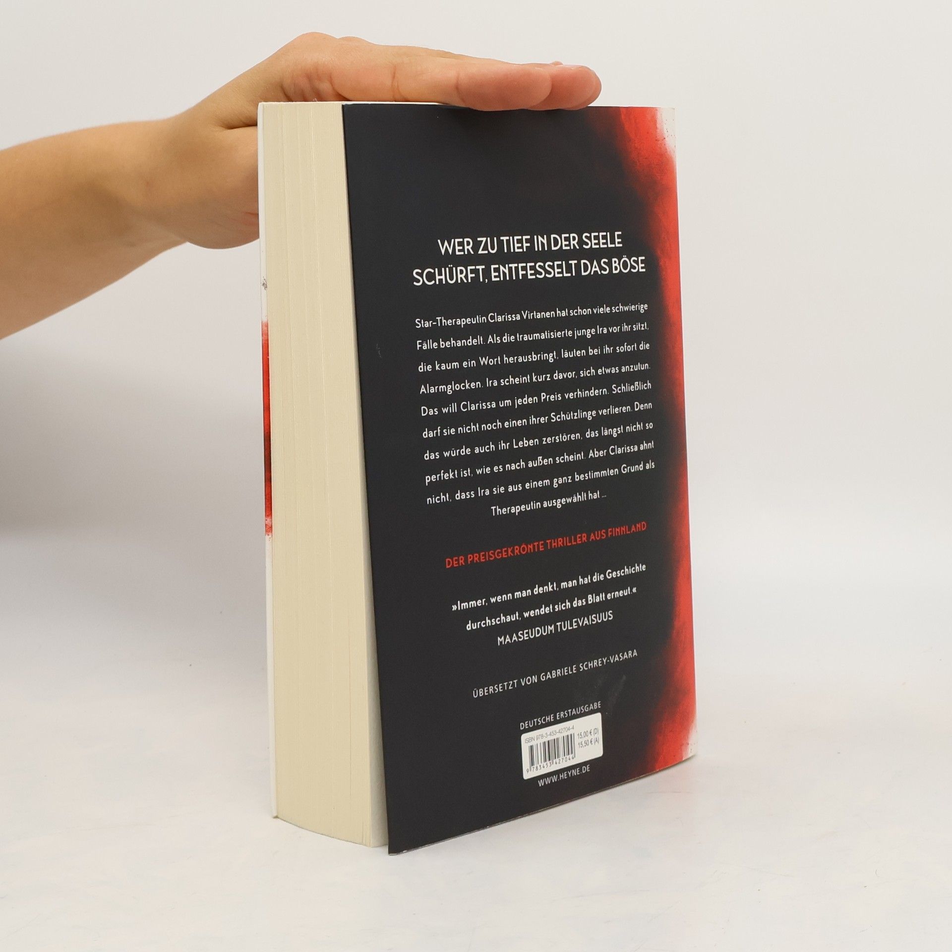Wer zu tief in der Seele schürft, entfesselt das Böse Star-Therapeutin Clarissa Virtanen hat schon viele schwierige Fälle behandelt. Als die traumatisierte junge Ira vor ihr sitzt, die kaum ein Wort herausbringt, läuten bei ihr sofort die Alarmglocken. Ira scheint kurz davor, sich etwas anzutun. Das will Clarissa um jeden Preis verhindern. Schließlich darf sie nicht noch einen ihrer Schützlinge verlieren. Denn das würde auch ihr Leben zerstören, das längst nicht so perfekt ist, wie es nach außen scheint. Aber Clarissa ahnt nicht, dass Ira sie aus einem ganz bestimmten Grund als Therapeutin ausgewählt hat … Ein Psychothriller der Extraklasse: Immer wenn du denkst, du hast die Geschichte durchschaut, wendet sich das Blatt erneut.