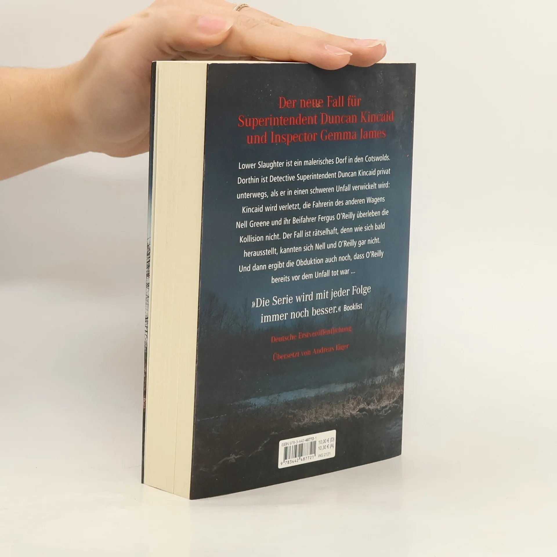 Lower Slaughter ist ein malerisches Dorf in den Cotswolds. Dorthin ist Detective Superintendent Duncan Kincaid privat unterwegs, als er in einen schweren Unfall verwickelt wird: Kincaid wird verletzt, die Fahrerin des anderen Wagens, Nell Greene, und ihr Beifahrer Fergus O'Reilly überleben die Kollision nicht. Wie sich bald herausstellt, kannten sich Nell und O'Reilly gar nicht, hatten aber beide kurz vor dem Unglück im Pub von Viv Holland gegessen – der Chefköchin, zu deren Benefizessen am Wochenende Kincaid und James eingeladen sind. Der Fall wird immer rätselhafter, denn die Untersuchung ergibt, dass O'Reilly bereits vor dem Unfall tot war ... Der neue Fall aus der Bestseller-Serie um Duncan Kincaid und Gemma James.