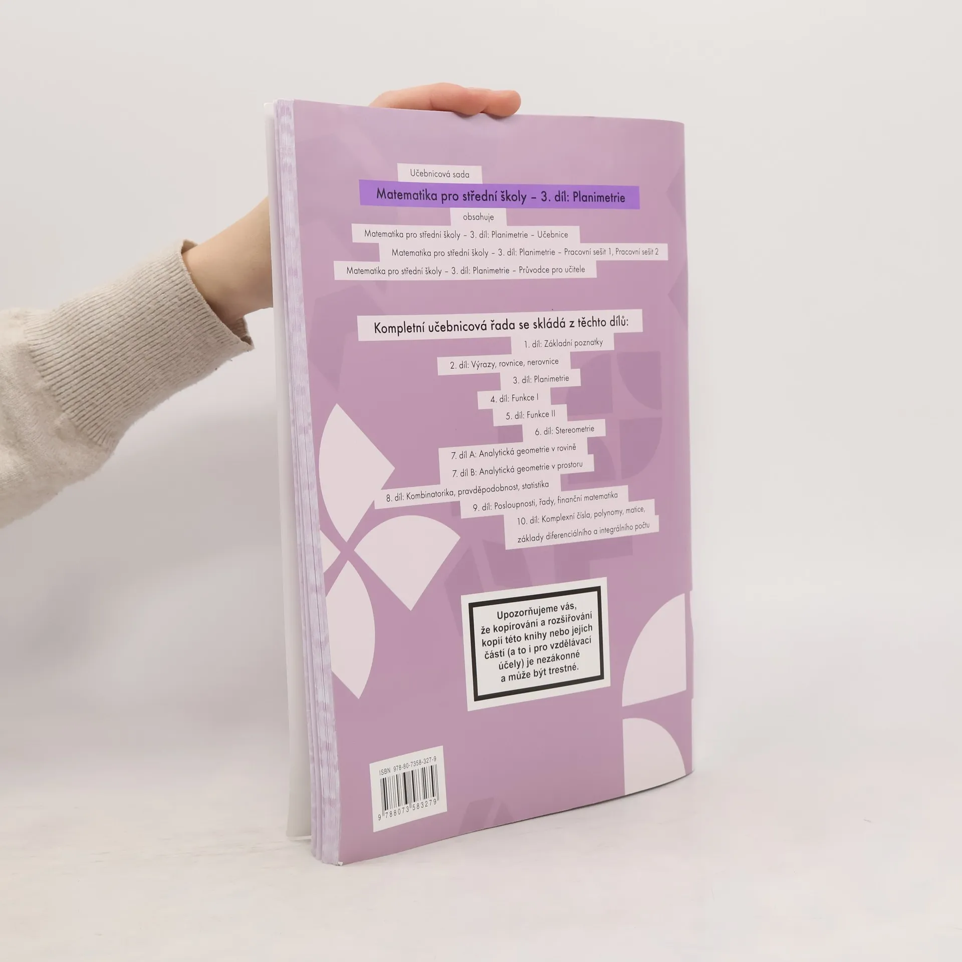 Pracovní sešit - každé kapitole v učebnici odpovídá příslušná kapitola v pracovním sešitě. Ke každému tématu náleží tři úrovně úkolů seřazených podle Bloomovy taxonomie vzdělávacích cílů. V rámci jednotlivých úrovní zároveň postupně roste obtížnost zadaných cvičení, čímž je umožněno dosáhnout úspěchu všem studentům. Různorodostí úloh a snahou o propojení matematiky s praxí přispívá pracovní sešit ke zvýšenému zájmu studentů o vyučovaný předmět a zvyšuje tak jejich motivaci ke studiu.