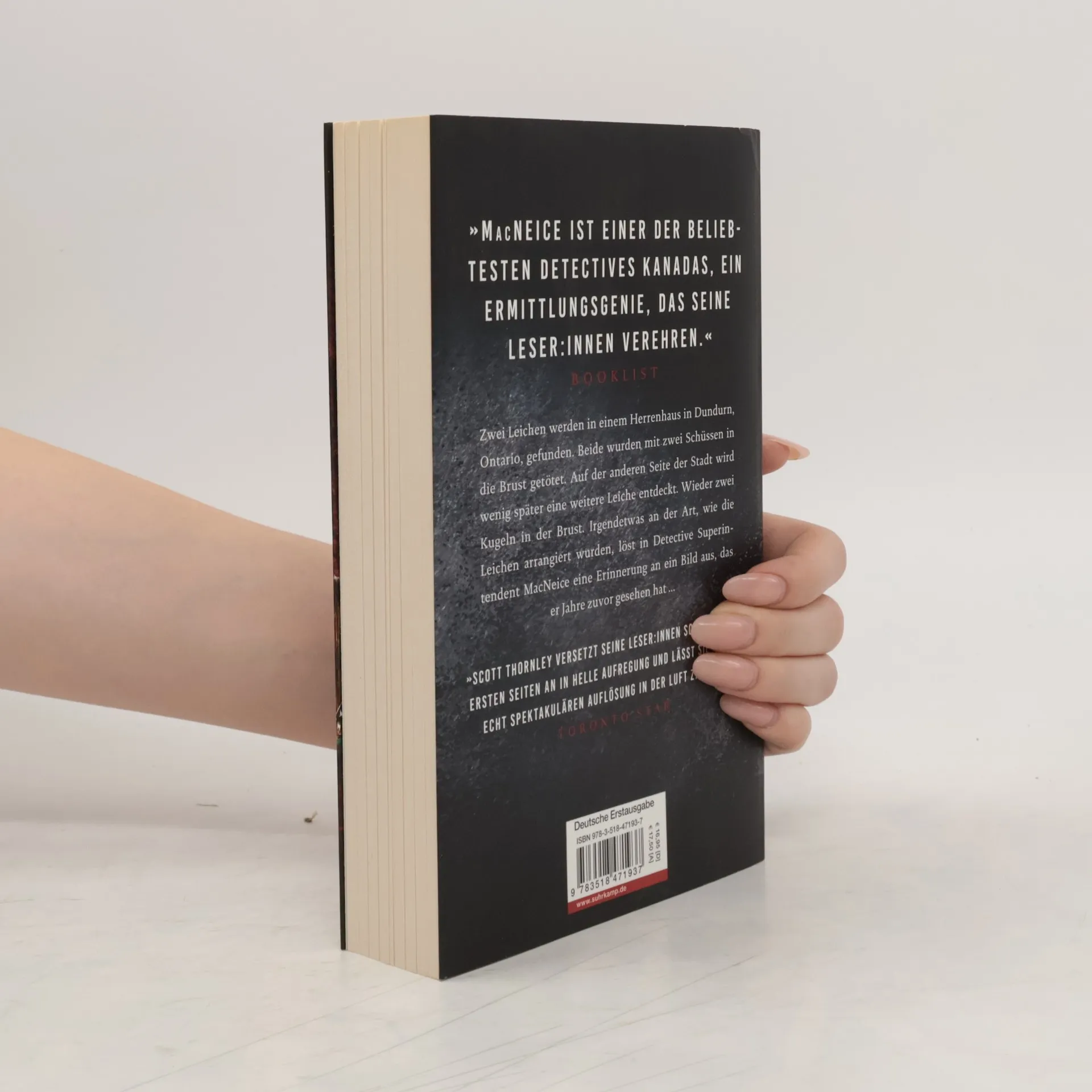 Zwei Leichen werden in einem Herrenhaus in Dundurn, Ontario, gefunden: Howard Terry und sein Sohn Matthew wurden beide mit zwei Schüssen in die Brust getötet. Unter Matthews Körper liegt eine Puppe, aus deren Kopf blutrote Watte herausquillt. In der Nähe liegt eine Schaufensterpuppe in einem Nachthemd, ebenfalls mit zwei Einschusslöchern in der Brust. Auf der anderen Seite der Stadt wird eine weitere Leiche entdeckt: An einen riesigen Felsen gelehnt liegt ein Mann im Baumwollnachthemd, der einen Eselskopf aus Pappmaché trägt. Wieder zwei Kugeln in der Brust. Irgendetwas an der Art, wie die Leichen arrangiert wurden, löst in Detective Superintendent MacNeice eine Erinnerung an ein Bild aus, das er Jahre zuvor gesehen hat ...