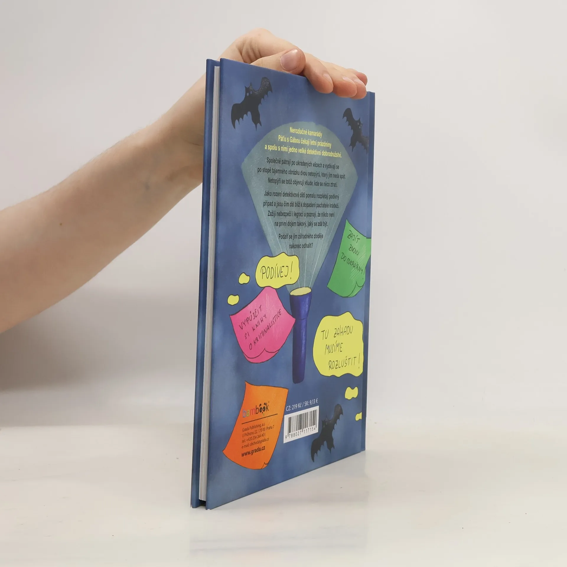 Nerozlučné kamarády Páťu s Gábou čekají letní prázdniny a spolu s nimi jedno velké detektivní dobrodružství. Společně pátrají po ukradených věcech a vydávají se po stopě tajemného obrázku dvou netopýrů, který jim nedá spát. Netopýři se totiž objevují všude, kde se něco ztratí. Jako rození detektivové děti pomalu rozplétají podivný případ a jsou čím dál blíž k dopadení pachatele krádeží. Zažijí nebezpečí i legraci a poznají, že nikdo není na první dojem takový, jaký se zdá být. Podaří se jim záhadného zloděje nakonec odhalit?