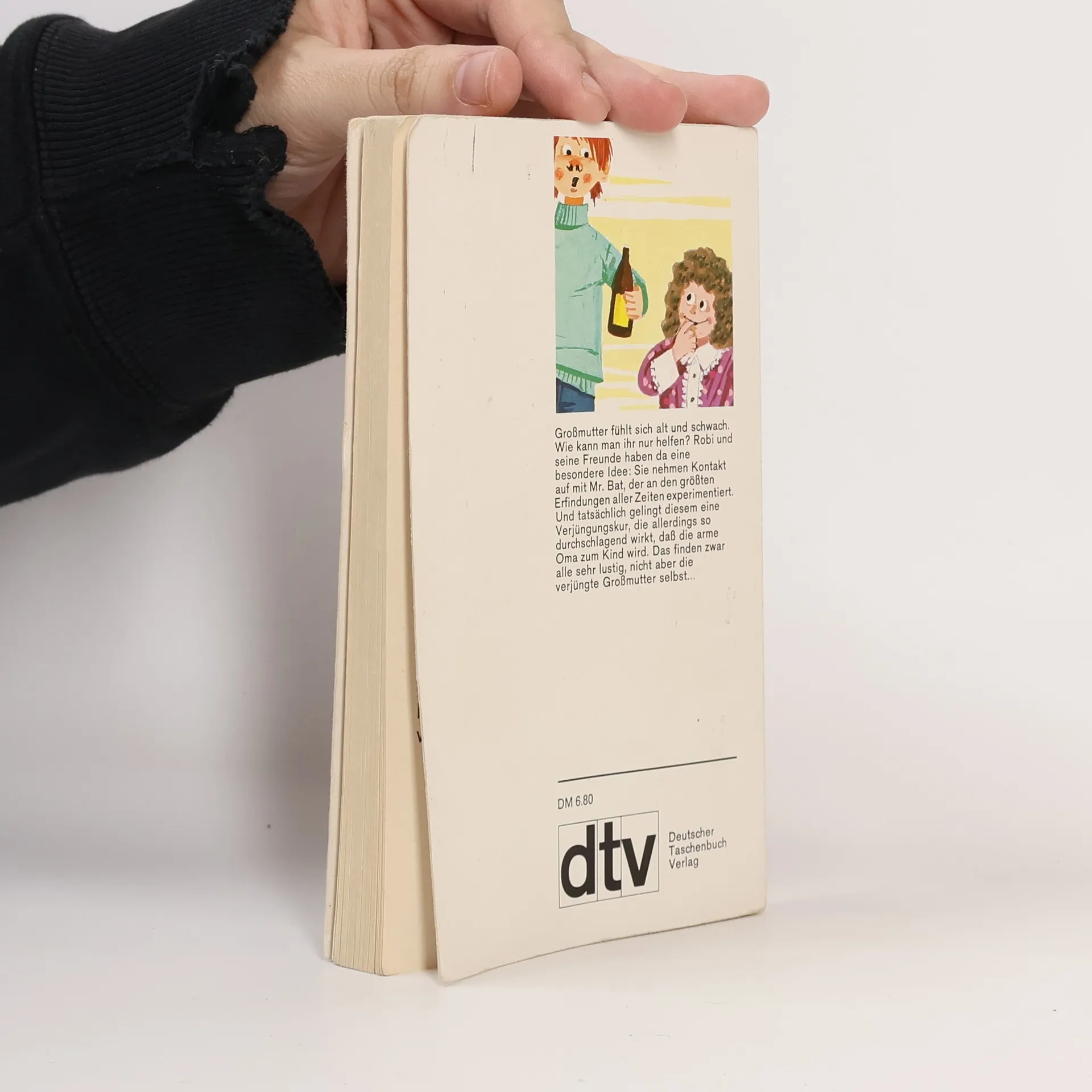 Eine turbulente Zeitreise und ein Verjüngungstrank mit erstaunlicher Wirkung! Wer ist der geheimnisvolle Mr. Bat? Er hat eine Zeitmaschine erfunden und jetzt kann er Robis Oma sogar einen Verjüngungstrank anbieten. Allerdings weiß er nur wenig über den Trank, denn er hat ihn von einer längst verstorbenen Urahnin übernommen. Trotzdem trinkt die Oma gleich die ganze Flasche aus. Und zu Robis Erstaunen verwandelt sie sich innerhalb von Sekunden in ein fünfjähriges Mädchen! Das geht Robi eindeutig zu weit. Doch es gibt nur eine, die die Verwandlung wieder rückgängig machen kann: Mr. Bats Urahnin in der Vergangenheit. Sonderausgabe anlässlich der Verleihung des Astrid-Lindgren-Gedächtnispreises an Christine Nöstlinger.