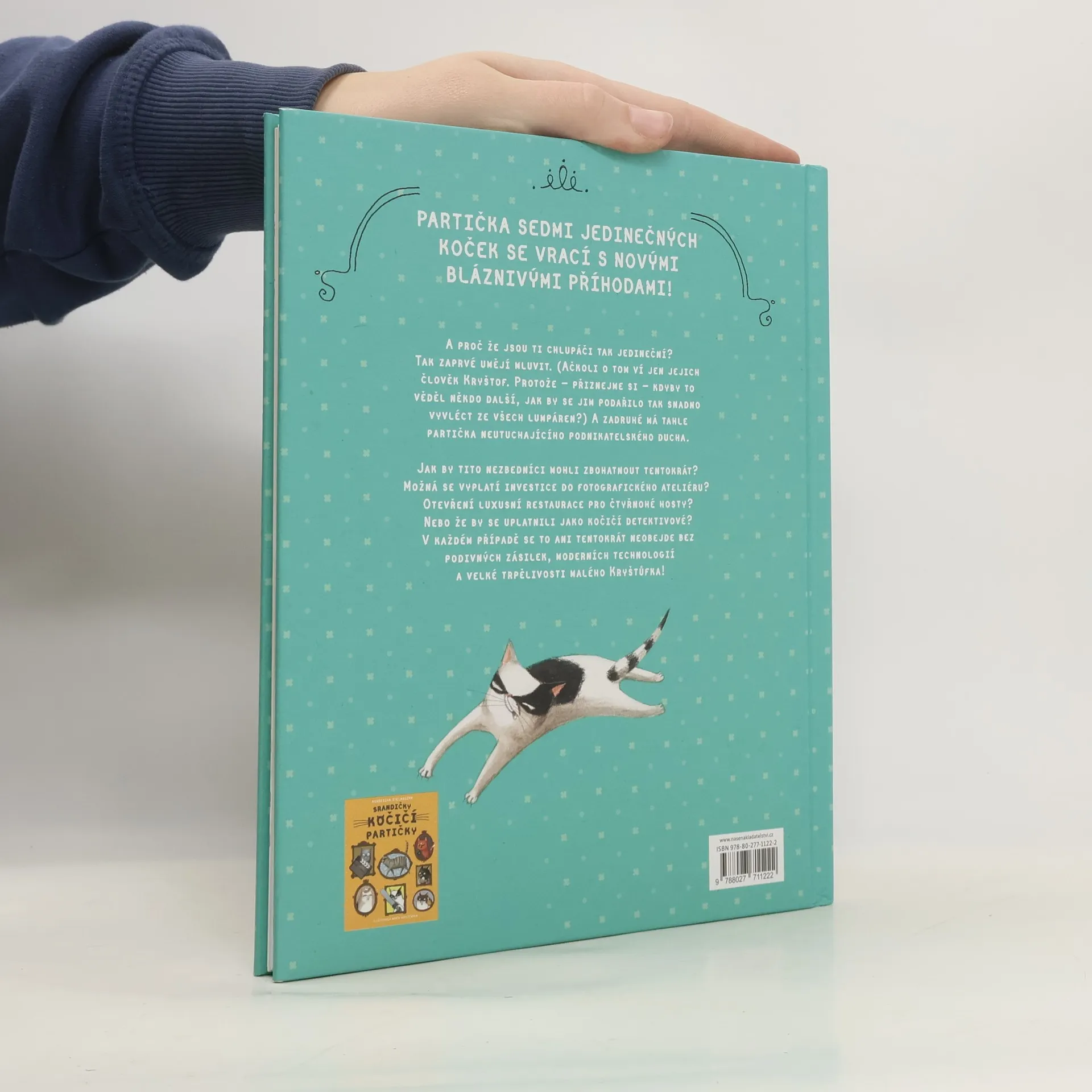 Partička sedmi nezkrotných jedinečných koček se vrací s novými bláznivými příhodami!A proč že jsou to chlupáči tak jedineční? Tak zaprvé umějí mluvit. (Ačkoli o tom ví jedině jejich člověk Krištof. Protože přiznejme si to na rovinu – kdyby to věděl i někdo další, jak by se jim podařilo tak snadno se vyvléct ze všech lumpáren?) A zadruhé má tahle partička neutuchajícího podnikatelského ducha.Jak by tito nezbedníci mohli zbohatnout tentokrát? Možná by se vyplatila investice do fotografického ateliéru? Otevření luxusní restaurace pro čtyřnohé hosty? Nebo že by se uplatnili jako kočičí detektivové? V každém případě se to ani tentokrát neobejde bez podivných zásilek, moderních technologií a velké trpělivosti malého Krištůfka!Úžasně ilustrovaná knížka, plná veselých příběhů zasazených do současnosti, přináší dětem známé a blízké zvířecí hrdiny.