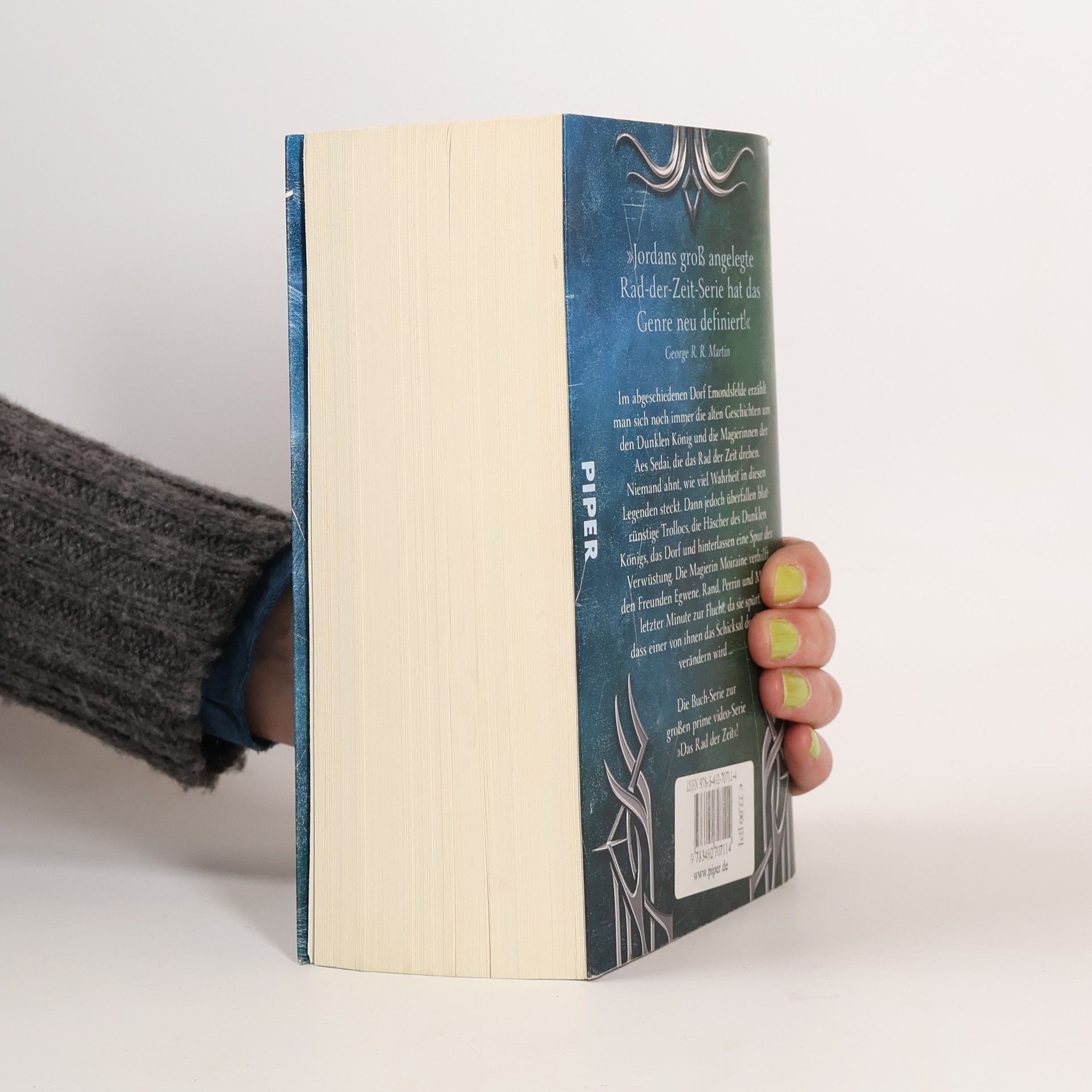 Eine phantastische Reise beginnt … Im abgeschiedenen Dorf Emondsfelde erzählt man sich noch immer die alten Geschichten um den Dunklen König und die Magierinnen der Aes Sedai, die das Rad der Zeit drehen. Niemand ahnt, wie viel Wahrheit in diesen Legenden steckt. Dann jedoch überfallen blutrünstige Trollocs, die Häscher des Dunklen Königs, das Dorf und hinterlassen eine Spur der Verwüstung. Die Magierin Moiraine verhilft den Freunden Egwene, Rand, Perrin und Mat in letzter Minute zur Flucht, da sie spürt, dass einer von ihnen das Schicksal der Welt verändern wird ... »Seine groß angelegte Rad-der-Zeit-Serie hat das Genre neu definiert!« George R. R. Martin