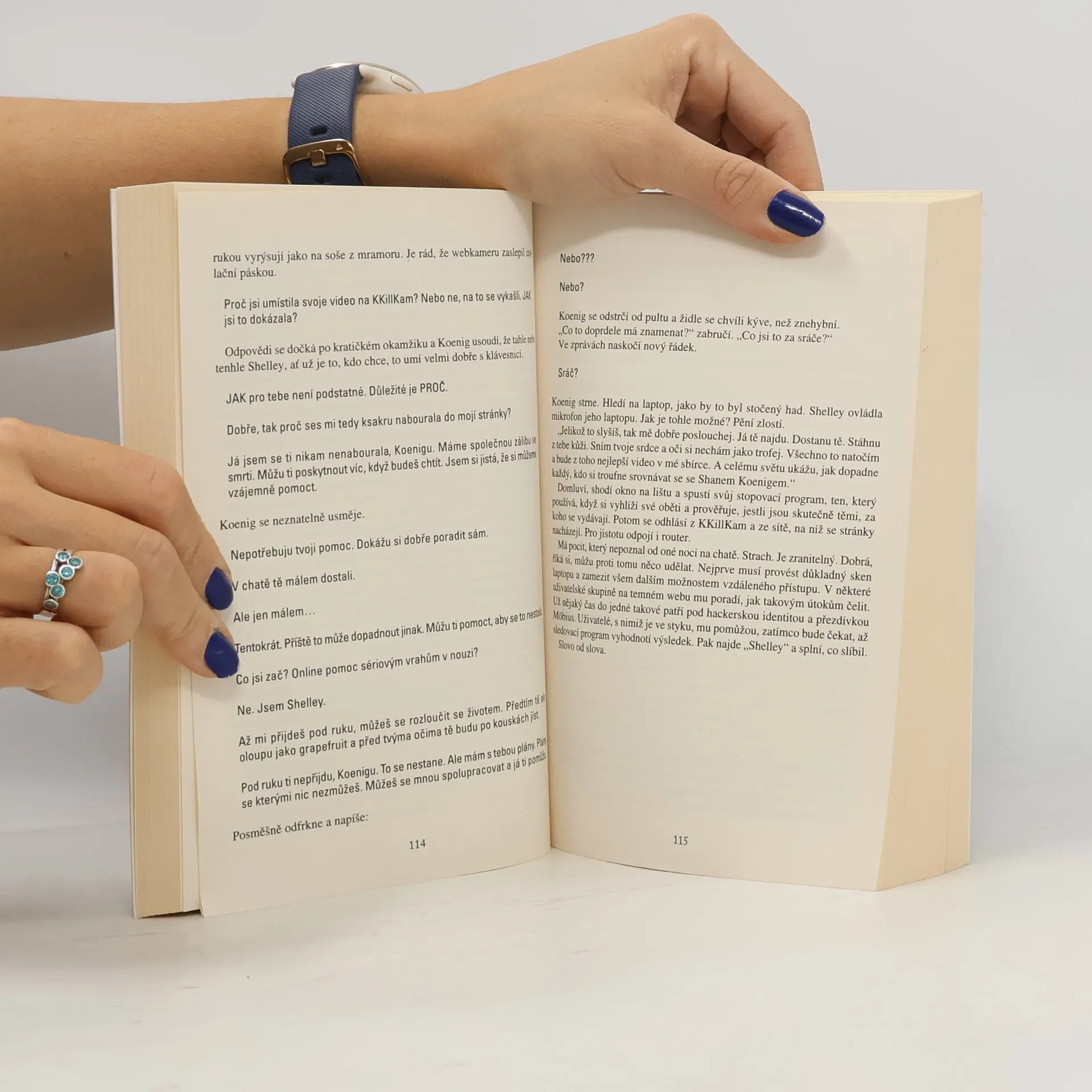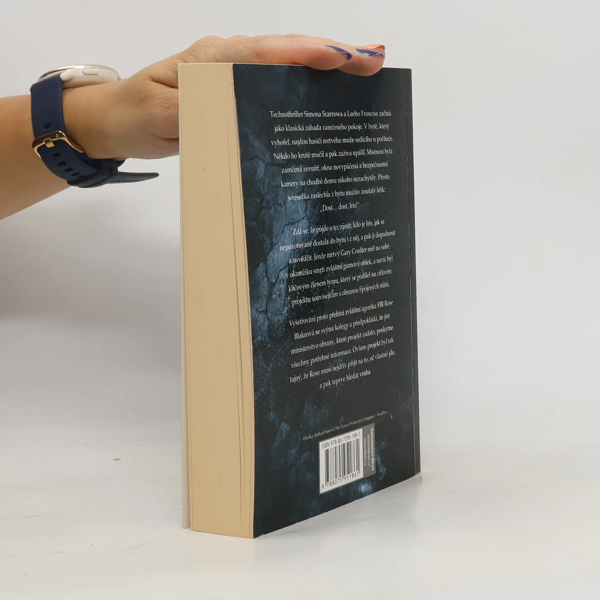 Technothriller Simona Scarrowa a Lee Francise začíná jako klasická záhada zamčeného pokoje. V bytě, který vyhořel, najdou hasiči mrtvého muže sedícího u počítače. Někdo ho krutě mučil a pak zaživa upálil. Místnost byla zamčená zevnitř, okna nevypáčená a bezpečnostní kamery na chodbách domu nikoho nezachytily. Přesto sousedka zaslechla z bytu mužův zoufalý křik: „Dost... dost, Iris!“ Zdá se, že půjde o to, zjistit, kdo Iris je, jak se nepozorovaně dostala do bytu i z něj, a pak ji dopadnout a usvědčit. Jenže mrtvý Gary Coulter měl na sobě v okamžiku smrti zvláštní gumový oblek a navíc byl klíčovým členem týmu, který se podílel na citlivém projektu souvisejícím s obranou Spojených států. Vyšetřování proto přebírá zvláštní agentka FBI Rose Blakeová se svými kolegy a předpokládá, že jim ministerstvo obrany, které projekt zadalo, poskytne všechny potřebné informace. Ovšem projekt byl tak tajný, že Rose musí nejdřív přijít na to, oč vlastně jde, a pak teprve hledat vraha.