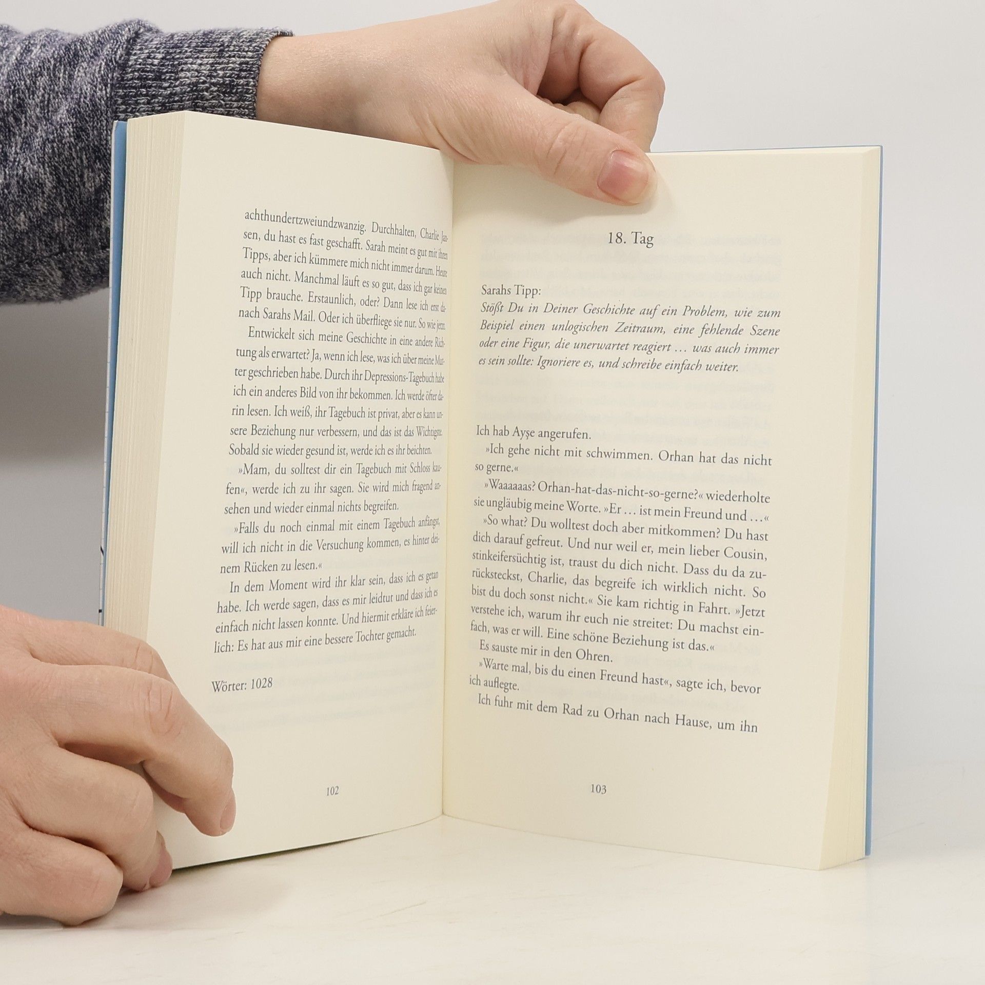 30.000 Wörter von Charlie! Jeden Tag tausend Wörter schreiben, und das einen Monat lang! Die sechzehnjährige Charlie hat eigentlich gar keine Lust, am großen Schreibmarathon teilzunehmen, den ihre Lehrerin organisiert. Eine Fantasiegeschichte fällt ihr erst recht nicht ein, darum erzählt sie einfach das, was sie erlebt. Und plötzlich ist das Schreiben gar nicht mehr so schwierig, denn in Charlies Leben wird einiges durcheinander gewirbelt. Sie verliebt sich in Orhan, den Jungen mit den goldenen Pünktchen in den Augen. Fast wäre Charlie glücklich, wenn ihre Mutter nur keine Depression hätte und Orhan sich nicht sonderbar verhalten würde ... Auch als