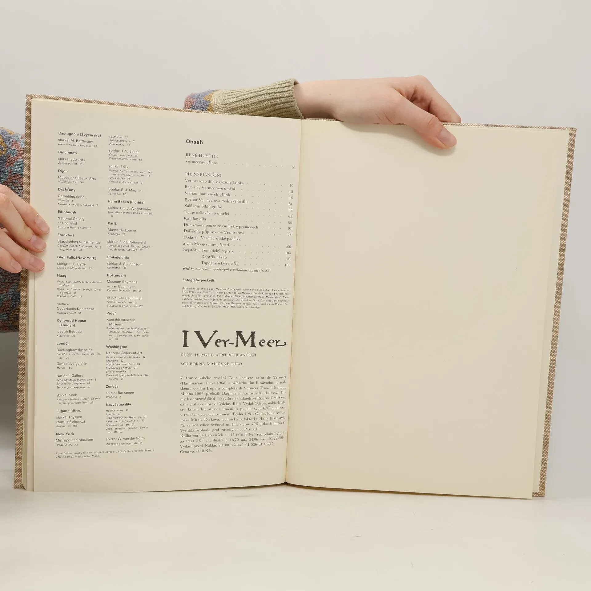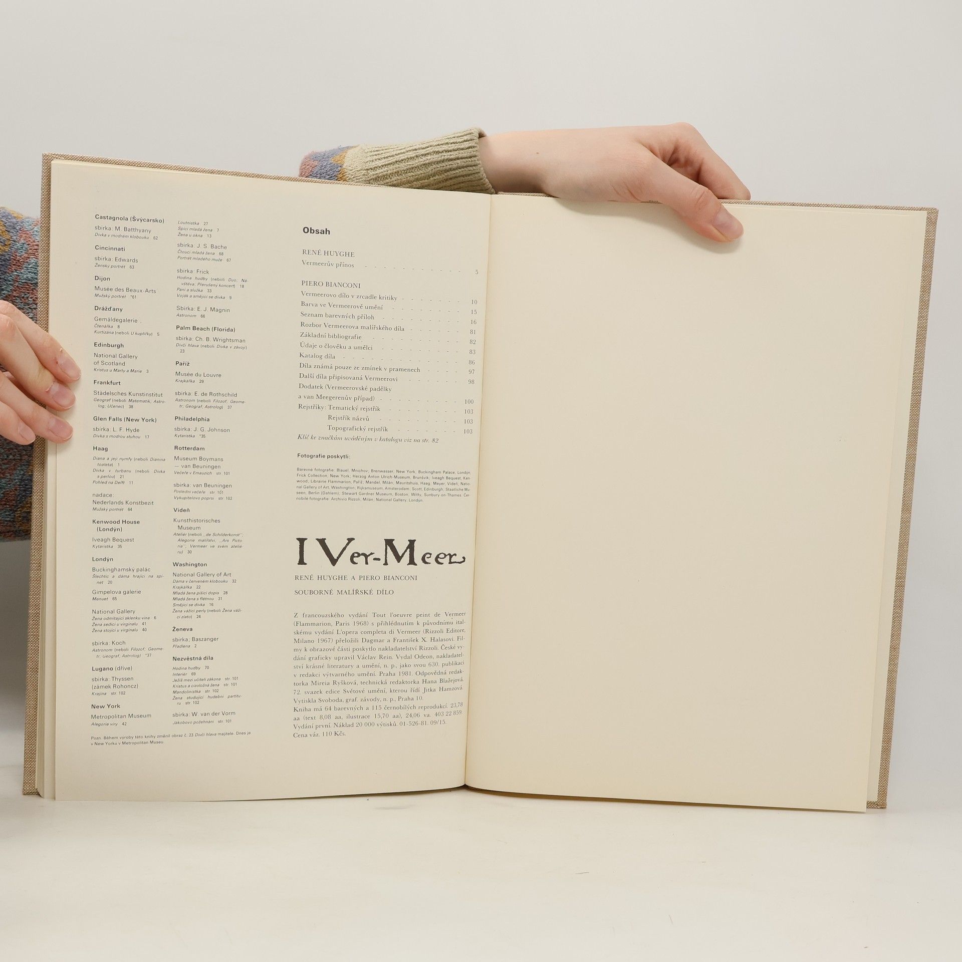 Uměleckohistorická publikace přináší vedle úvodní studie, která hodnotí přenos holandského malíře 17. století Jana Vermeera van Delft i průřez kritikou jeho díla a řadu barevných reprodukcí Vermeerových obrazů. Uvádí podrobné životopisné údaje, základní bibliografii a chronologickýa ikonografický seznam všech obrazů, které Vermeer vytvořil anebo které se mu připisují.