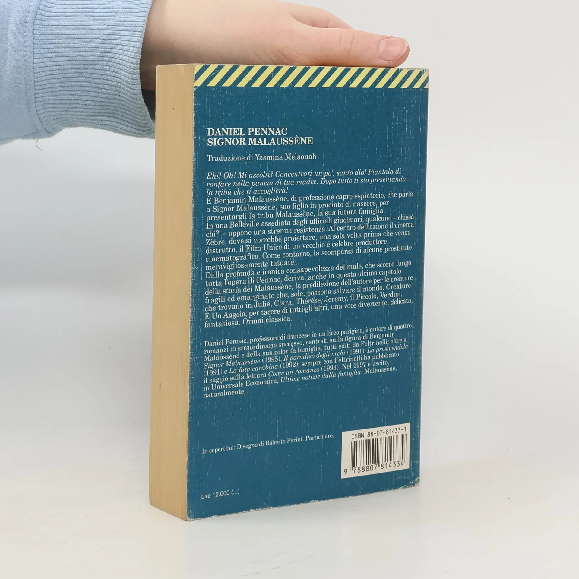 Ehi! Oh! Mi ascolti? Concentrati un po', santo dio! Piantala di ronfare nella pancia di tua madre. Dopo tutto ti sto presentando la tribù che ti accoglierà! È Benjamin Malaussène, di professione capro espiatorio, che parla a Signor Malaussène, suo figlio in procinto di nascere, per presentargli la tribù Malaussène, la sua futura famiglia. In una Belleville assediata dagli ufficiali giudiziari, qualcuno - chissà chi?! - oppone una strenua resistenza. Al centro dell'azione il cinema Zèbre, dove si vorrebbe proiettare, una sola volta prima che venga distrutto, il Film Unico di un vecchio e celebre produttore cinematografico. Come contorno, la scomparsa di alcune prostitute meravigliosamente tatuate... Dalla profonda e ironica consapevolezza del male, che score lungo tutta l'opera di Pennac, deriva, anche in questo ultimo capitolo della storia di Malaussène, la predilezione dell'autore per le creature fragili ed emarginate che, sole, possono salvare il mondo. Creature che trovano in Julier, Clara, Thérese, Jeremy, il Piccolo, Verdun, È Un Angelo, per tacere di tutti gli altri, una voce divertente, delicata fantasiosa. Ormai classica.