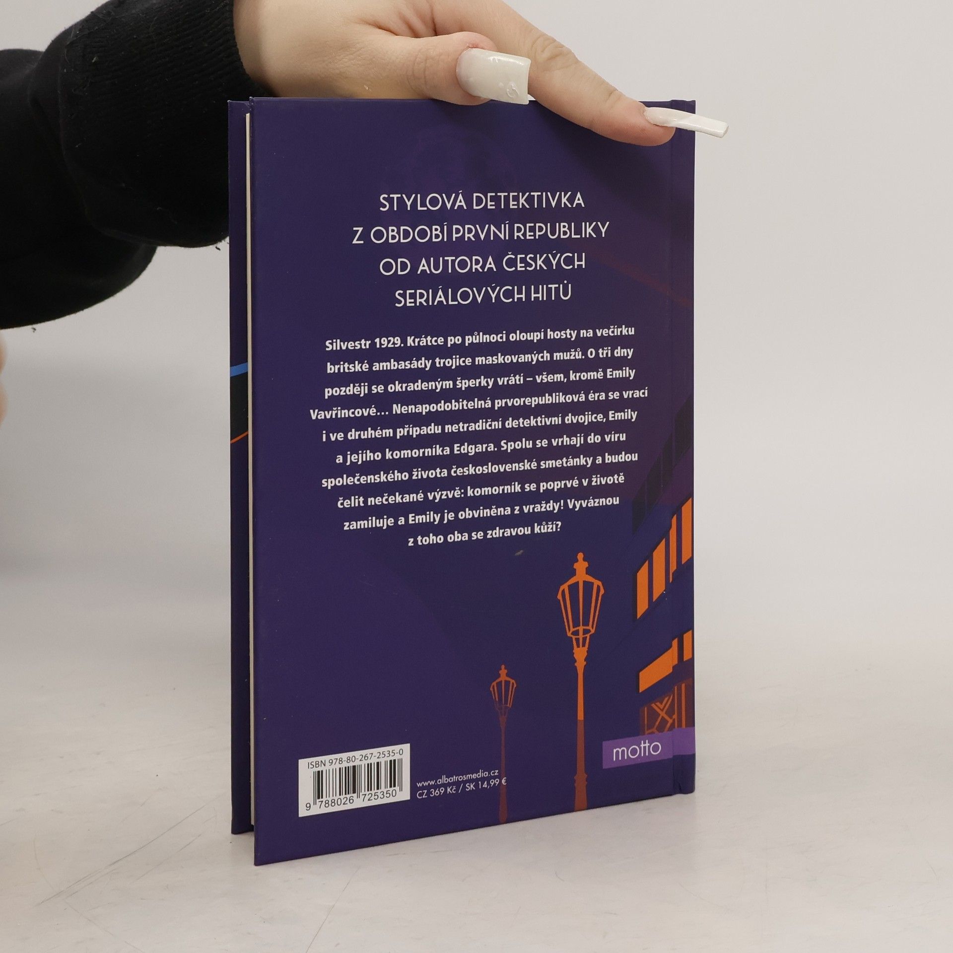 Stylová detektivka z období první republiky. Od autora českých seriálových hitů.Silvestr 1929. Krátce po půlnoci oloupí hosty na večírku britské ambasády trojice maskovaných mužů. O tři dny později se okradeným šperky vrátí – všem, kromě Emily Vavřincové... Nenapodobitelná prvorepubliková éra se vrací i ve druhém případu netradiční detektivní dvojice, Emily a jejího komorníka Edgara. Spolu se vrhají do víru společenského života československé smetánky a budou čelit nečekané výzvě: komorník se poprvé v životě zamiluje a Emily je obviněna z vraždy! Vyváznou z toho oba se zdravou kůží?