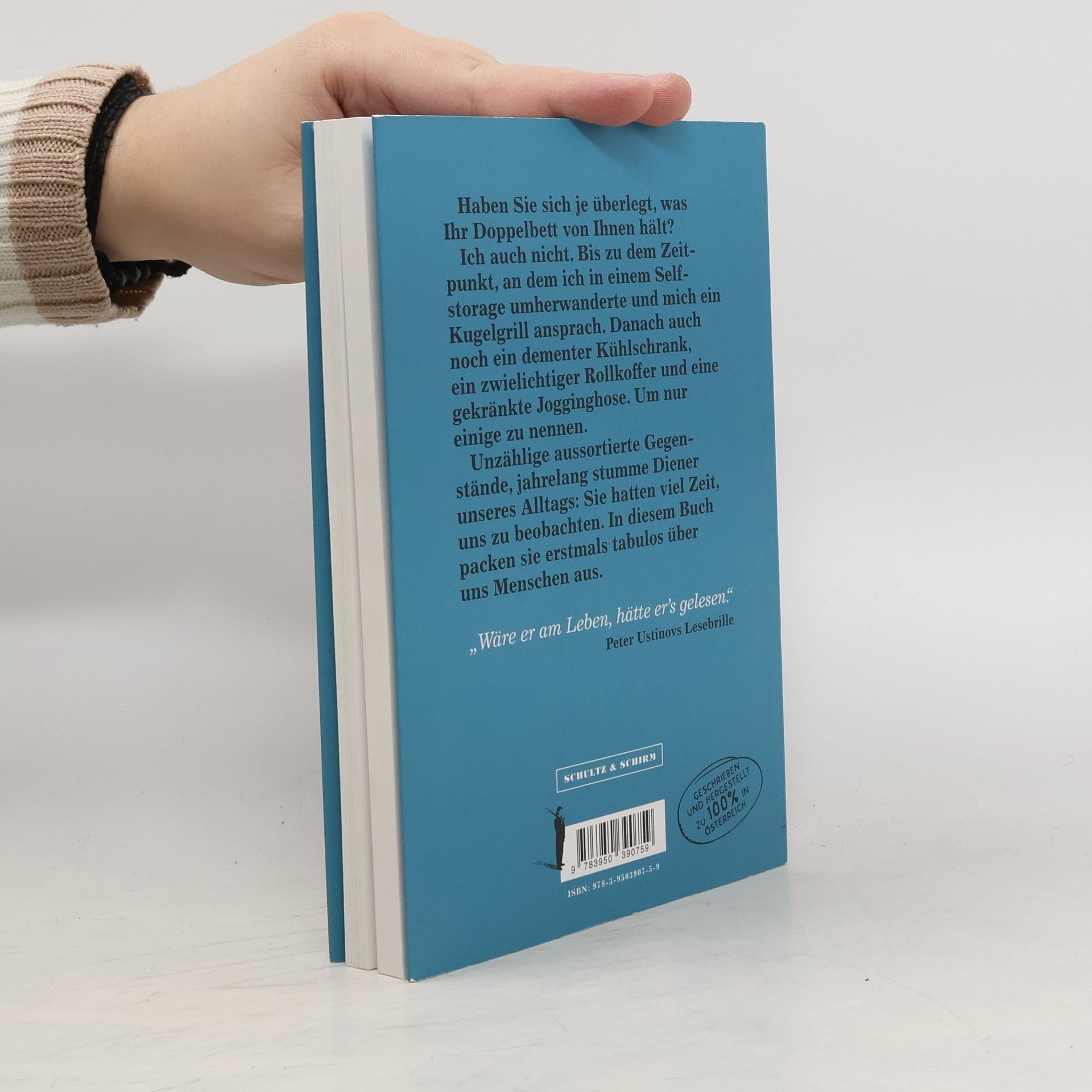 Haben Sie sich je überlegt, was Ihr Doppelbett von Ihnen hält? Ich auch nicht. Bis zu dem Zeitpunkt, an dem ich in einem Selfstorage umherwanderte und mich ein Kugelgrill ansprach. Danach auch noch ein dementer Kühlschrank, ein zwielichtiger Rollkoffer und eine gekränkte Jogginghose. Um nur einige zu nennen. Unzählige aussortierte Gegenstände, jahrelang stumme Diener unseres Alltags: Sie hatten viel Zeit, uns zu beobachten. In diesem Buch packen sie erstmals tabulos über uns Menschen aus. „Wäre er am Leben, hätte er’s gelesen.“ Peter Ustinovs Lesebrille „Mir ist es zu unrealistisch.“ J. K. Rowlings sprechender Hut „Endlich kriegen wir eine Stimme.“ Udo Jürgens' Bademantel