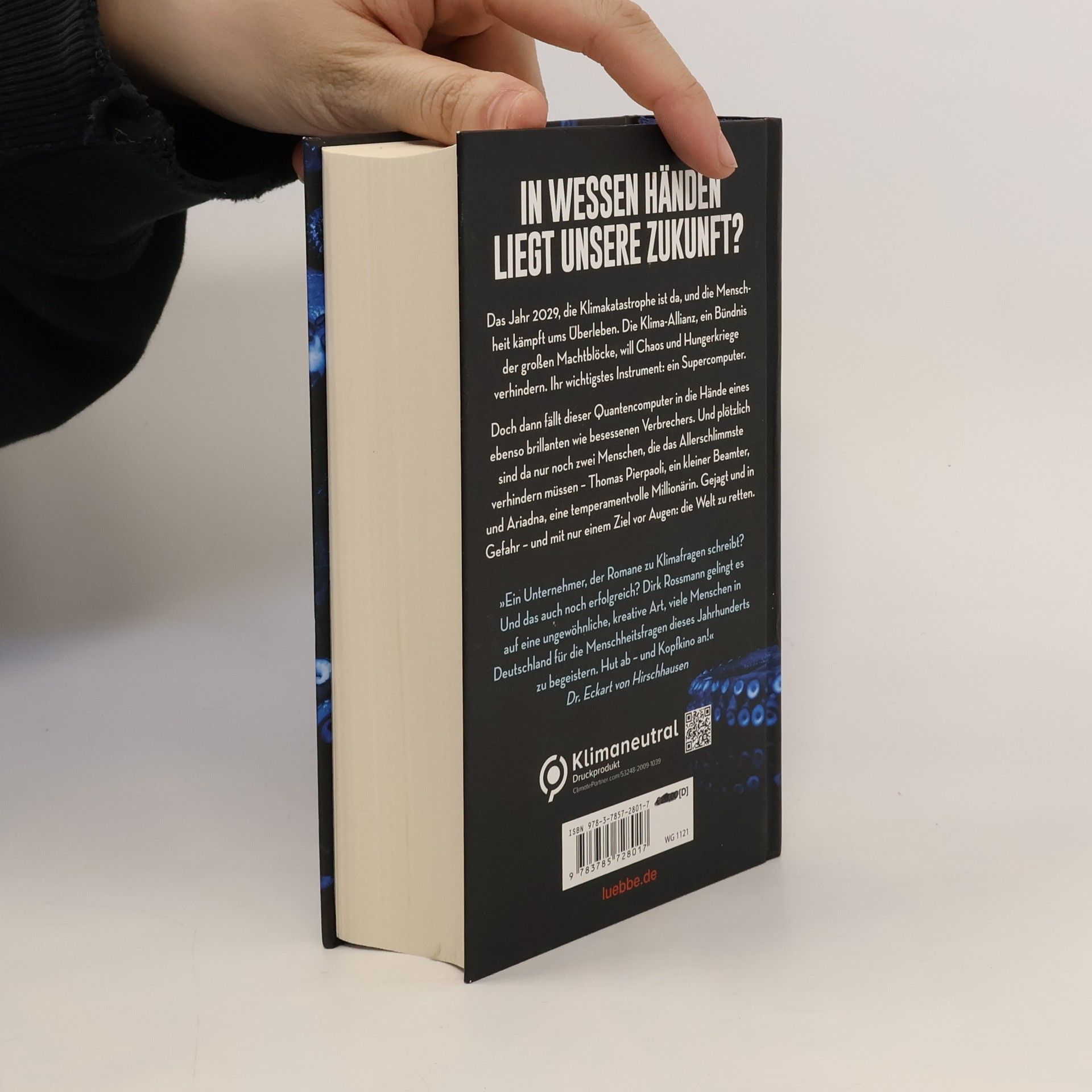 In wessen Händen liegt unsere Zukunft? Das Jahr 2029, die Klimakatastrophe ist da, und die Menschheit kämpft ums Überleben. Die Klima-Allianz, ein Bündnis der großen Machtblöcke, will Chaos und Hungerkriege verhindern. Ihr wichtigstes Instrument: ein Supercomputer. Doch dann fällt dieser Quantencomputer in die Hände eines ebenso brillanten wie besessenen Verbrechers. Und plötzlich sind da nur noch zwei Menschen, die das Allerschlimmste verhindern müssen - Thomas Pierpaoli, ein kleiner Beamter, und Ariadna, eine temperamentvolle Millionärin. Gejagt und in Gefahr - und mit nur einem Ziel vor Augen: die Welt zu retten.