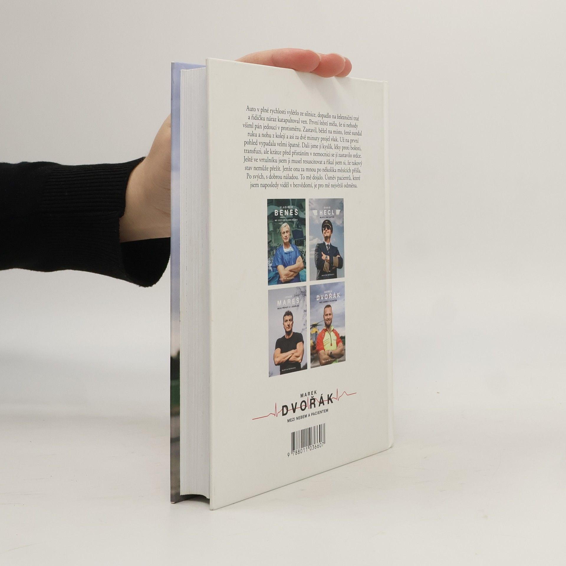 Při jeho práci jde o vteřiny. Během nich se musí rozhodnout, vytěsnit emoce a často si i sáhnout na dno. Lékař letecké záchranky Marek Dvořák takové situace zažívá denně a teď i vás vezme do světa, o kterém snil už jako malý kluk.Jak vypadá práce doktora ve vrtulníku? Na které vzlety nikdy nezapomene? Kdy měl při zásahu strach a co už by ve službě nechtěl zažít? Je to vyprávění, při kterém se občas tají dech. Chvílemi je dojemné a jindy vás naopak rozesměje. Taky vás naučí, že při první pomoci se není čeho bát, a možná i přiměje víc přemýšlet nad tím, co v životě děláte.Dvořák je mezi českými doktory svéráz. A to nejen kvůli mnoha tetováním, která má po těle. Pro kontroverzní názor nejde daleko, má osobitý smysl pro humor, ale zároveň je na každé jeho větě znát, jak moc medicínou žije. Když vypráví o pacientce, která ho po několika měsících od těžkého úrazu překvapila návštěvou a u které si myslel, že nemohla přežít, dojde i na slzy.