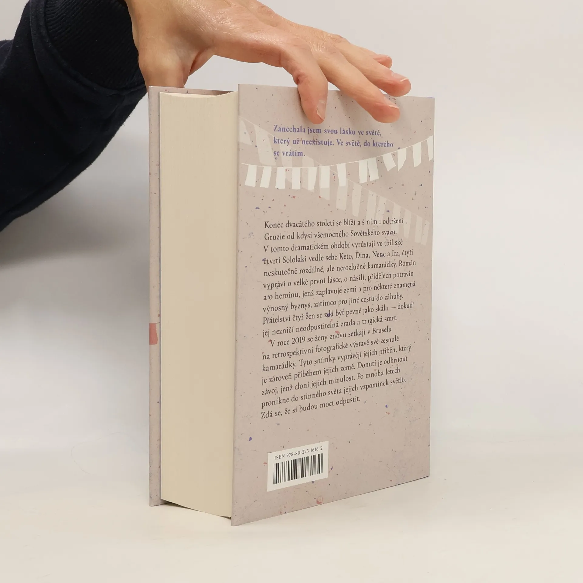 Zanechala jsem svou lásku ve světě, který už neexistuje. Ve světě, do kterého se vrátím. Konec dvacátého století se blíží a s ním i odtržení Gruzie od kdysi všemocného Sovětského svazu. V tomto dramatickém období vyrůstají ve tbiliské čtvrti Sololaki vedle sebe Keto, Dina, Nene a Ira, čtyři neskutečně rozdílné, ale nerozlučné kamarádky. Román vypráví o velké první lásce, o násilí, přídělech potravin a o heroinu, jenž zaplavuje zemi a pro některé znamená výnosný byznys, zatímco pro jiné cestu do záhuby. Přátelství čtyř žen se zdá být pevné jako skála — až jej nakonec zničí neodpustitelná zrada a tragická smrt. V roce 2019 se ženy znovu setkají v Bruselu na retrospektivní fotografické výstavě své zesnulé přítelkyně. Tyto snímky vyprávějí jejich příběh, který je zároveň příběhem jejich země. Donutí je odhrnout závoj, který cloní jejich minulost. Po mnoha letech pronikne do stinného světa jejich vzpomínek světlo. Zdá se, že budou moci odpustit.