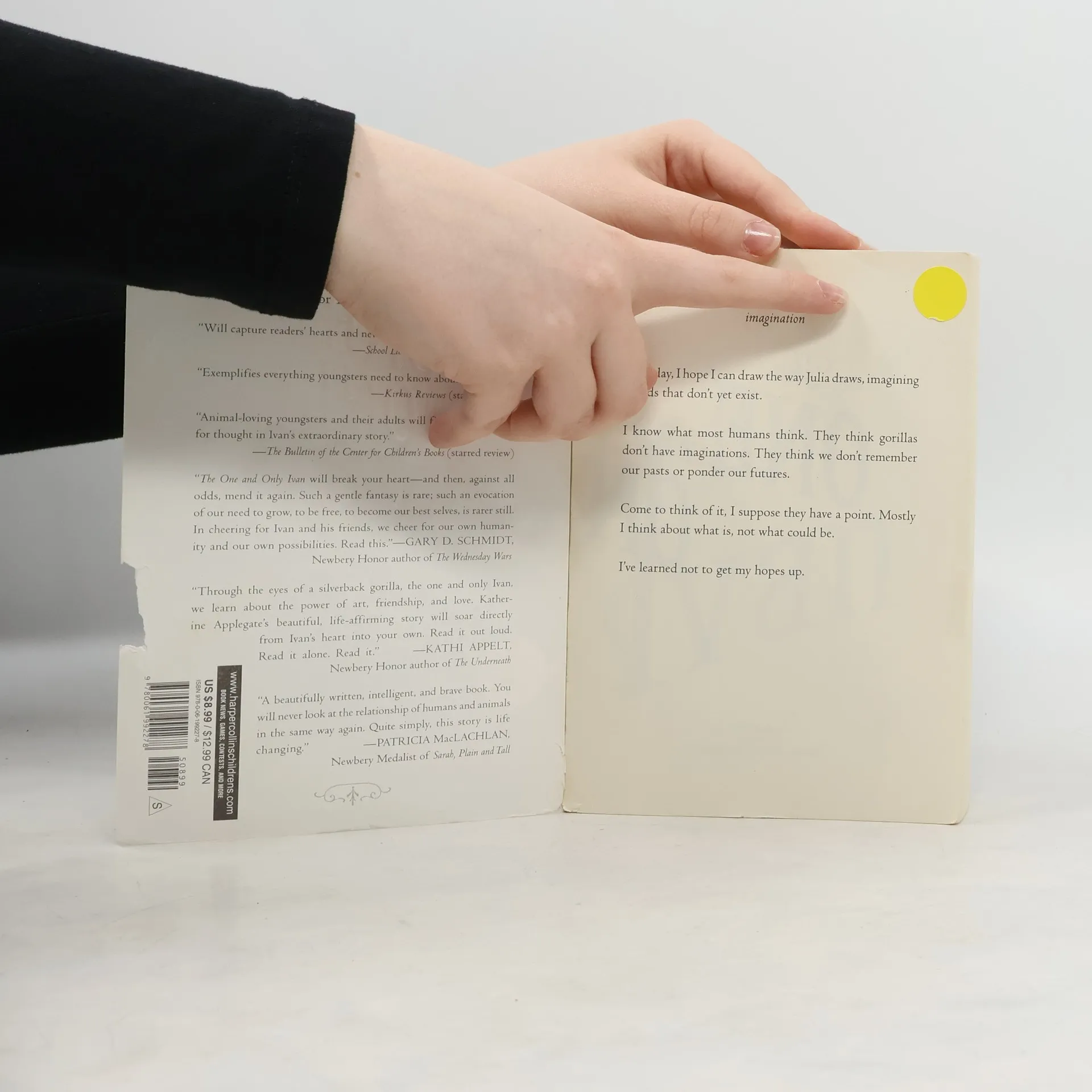 Soon to be a major motion picture! Winner of the Newbery Medal and a #1 New York Times bestseller This unforgettable novel from renowned author Katherine Applegate celebrates the transformative power of unexpected friendship. Inspired by the true story of a captive gorilla known as Ivan, this illustrated book is told from the point of view of Ivan himself. Having spent twenty-seven years behind the glass walls of his enclosure in a shopping mall, Ivan has grown accustomed to humans watching him. He hardly ever thinks about his life in the jungle. Instead, Ivan occupies himself with television, his friends Stella and Bob, and painting. But when he meets Ruby, a baby elephant taken from the wild, he is forced to see their home, and his art, through new eyes. In the tradition of timeless stories like Charlotte's Web and Stuart Little, Katherine Applegate blends humor and poignancy to create an unforgettable story of friendship, art, and hope. The One and Only Ivan features first-person narrative; author's use of literary devices (personification, imagery); and story elements (plot, character development, perspective). Plus don't miss Katherine Applegate's Endling series!