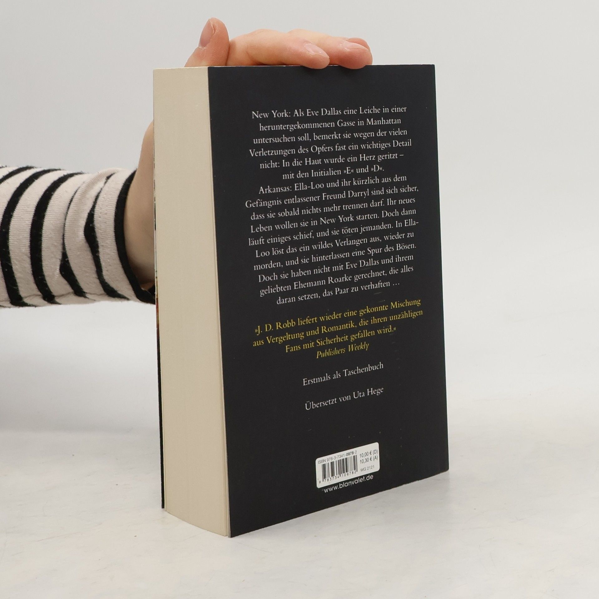 Ein mordlustiges Pärchen, das eine Spur des Bösen hinterlässt – und Eve Dallas wird nicht ruhen, bis die beiden hinter Gittern sind … New York: Als Eve Dallas eine Leiche in einer heruntergekommenen Gasse in Manhattan untersuchen soll, bemerkt sie wegen der vielen Verletzungen des Opfers fast ein wichtiges Detail nicht: In die Haut wurde ein Herz geritzt – mit den Initialien »E« und »D«. Arkansas: Ella-Loo und ihr kürzlich aus dem Gefängnis entlassener Freund Darryl sind sich sicher, dass sie sobald nichts mehr trennen darf. Ihr neues Leben wollen sie in New York starten. Doch dann läuft einiges schief, und sie töten jemanden. In Ella-Loo löst das ein wildes Verlangen aus, wieder zu morden, und sie hinterlassen eine Spur des Bösen. Doch sie haben nicht mit Eve Dallas und ihrem geliebten Ehemann Roarke gerechnet, die alles daran setzen, das Paar zu verhaften … 20 Jahre, 41 Romane und eine riesige Fangemeinde – Nora Roberts als J. D. Robb ist einfach unschlagbar!