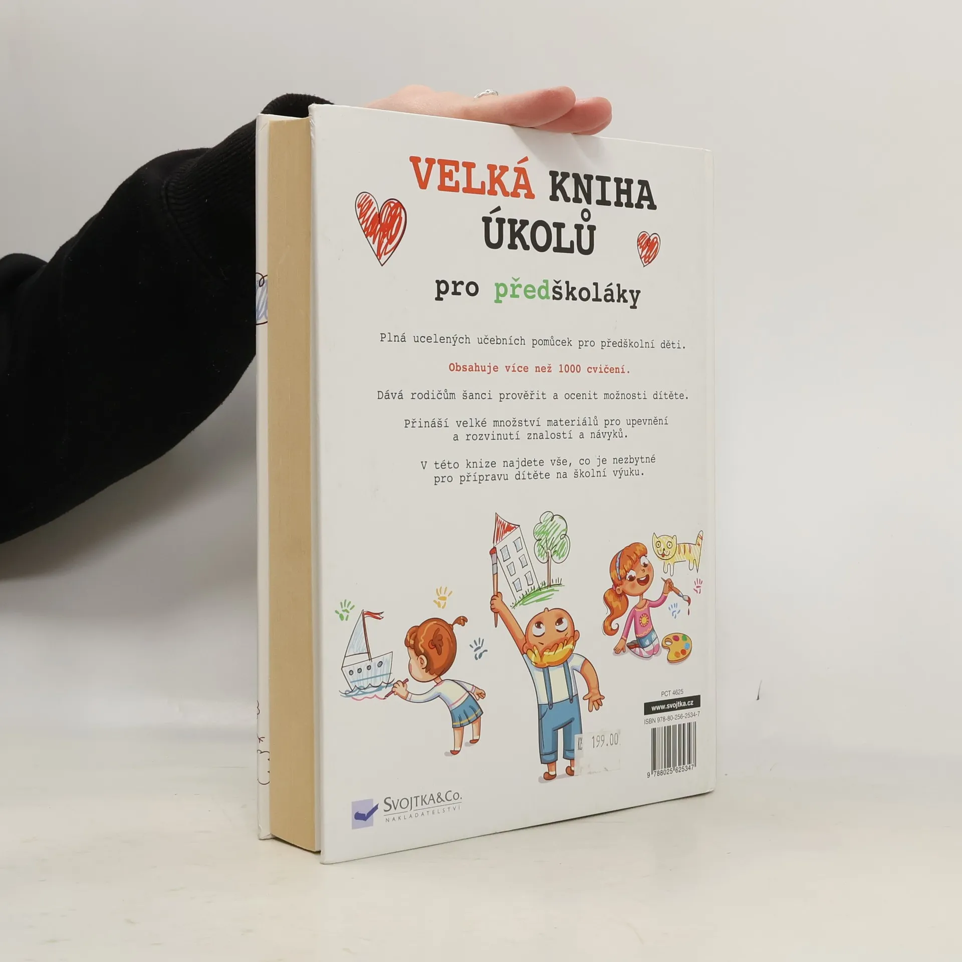 Kniha obsahuje více než tisíc rozmanitých úloh pro děti předškolního věku. Řešením těchto úloh se vaše dítě naučí písmenům a číslicím, rozšíří svou slovní zásobu, naučí se pomocí obrázků sestavovat pohádky, vybírat ke slovům rýmy a rozlišovat geometrické obrazce. Krok za krokem tak vaše dítě získá zábavnou formou vědomosti, které mu ulehčí start ve školních lavicích.