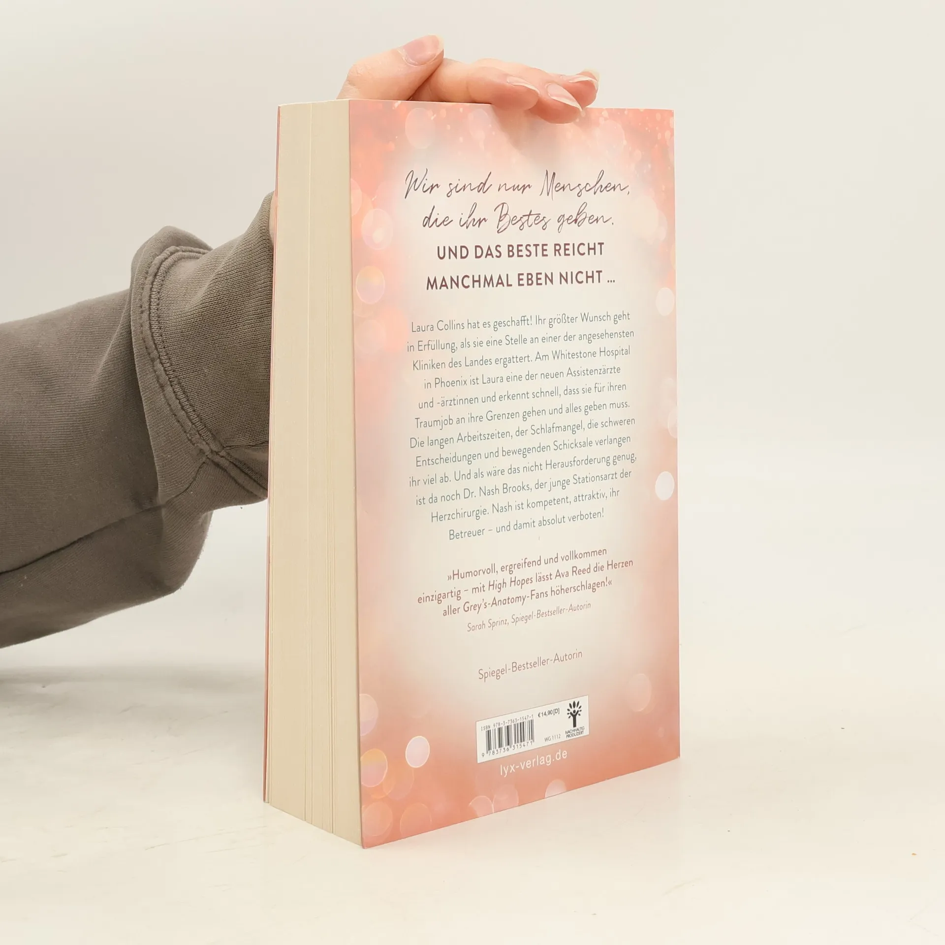 Wir sind nur Menschen, die ihr Bestes geben. Und das Beste reicht manchmal eben nicht ... Laura Collins hat es geschafft! Ihr größter Wunsch geht in Erfüllung, als sie eine Stelle an einer der angesehensten Kliniken des Landes ergattert. Am Whitestone Hospital in Phoenix ist Laura eine der neuen Assistenzärzte und -ärztinnen und erkennt schnell, dass sie für ihren Traumjob an ihre Grenzen gehen und alles geben muss. Die langen Arbeitszeiten, der Schlafmangel, die schweren Entscheidungen und bewegenden Schicksale verlangen ihr viel ab. Und als wäre das nicht Herausforderung genug, ist da noch Dr. Nash Brooks, der junge Stationsarzt der Herzchirurgie. Nash ist kompetent, attraktiv, ihr Betreuer - und damit absolut verboten! „Humorvoll, ergreifend und vollkommen einzigartig - mit HIGH HOPES lässt Ava Reed die Herzen aller GREY‘S-ANATOMY-Fans höherschlagen!“ SARAH SPRINZ, SPIEGEL-Bestseller-Autorin Auftakt der vierbändigen Serie rund um die jungen Ärzt: innen des WHITESTONE HOSPITALS von SPIEGEL-Bestseller-Autorin Ava Reed
