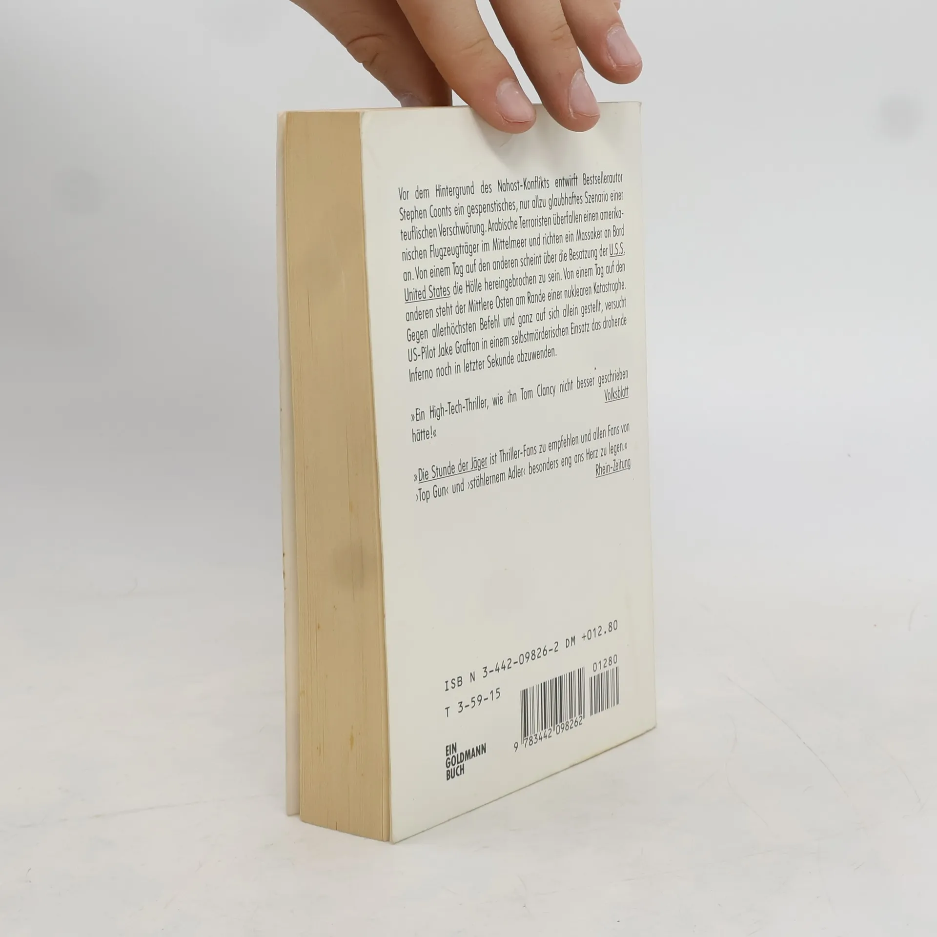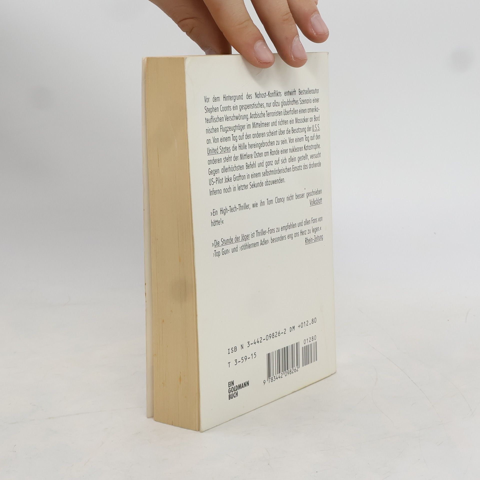 Vor dem Hintergrund des Nahost-Konflikts entwirft Bestsellerautor Stephen Coonts ein gespenstisches, nur allzu glaubhaftes Szenario einer teuflischen Verschwoerung. Arabische Terroristen ueberfallen einen amerikanischen Flugzeugtraeger im Mittelmeer und richten ein Massaker an Bord an. Von einem Tag auf den anderen scheint ueber die Besatzung der U.S.S. United States die Hoelle hereingebrochen zu sein. Von einem Tag auf den anderen steht der Mittlere Osten am Rande einer nuklearen Katastrophe. Gegen allerhoechsten Befehl und ganz auf sich allein gestellt, versucht US-Pilot Jake Grafton in einem selbstmoerderischen Einsatz das drohende Inferno noch in letzter Sekunde abzuwenden.