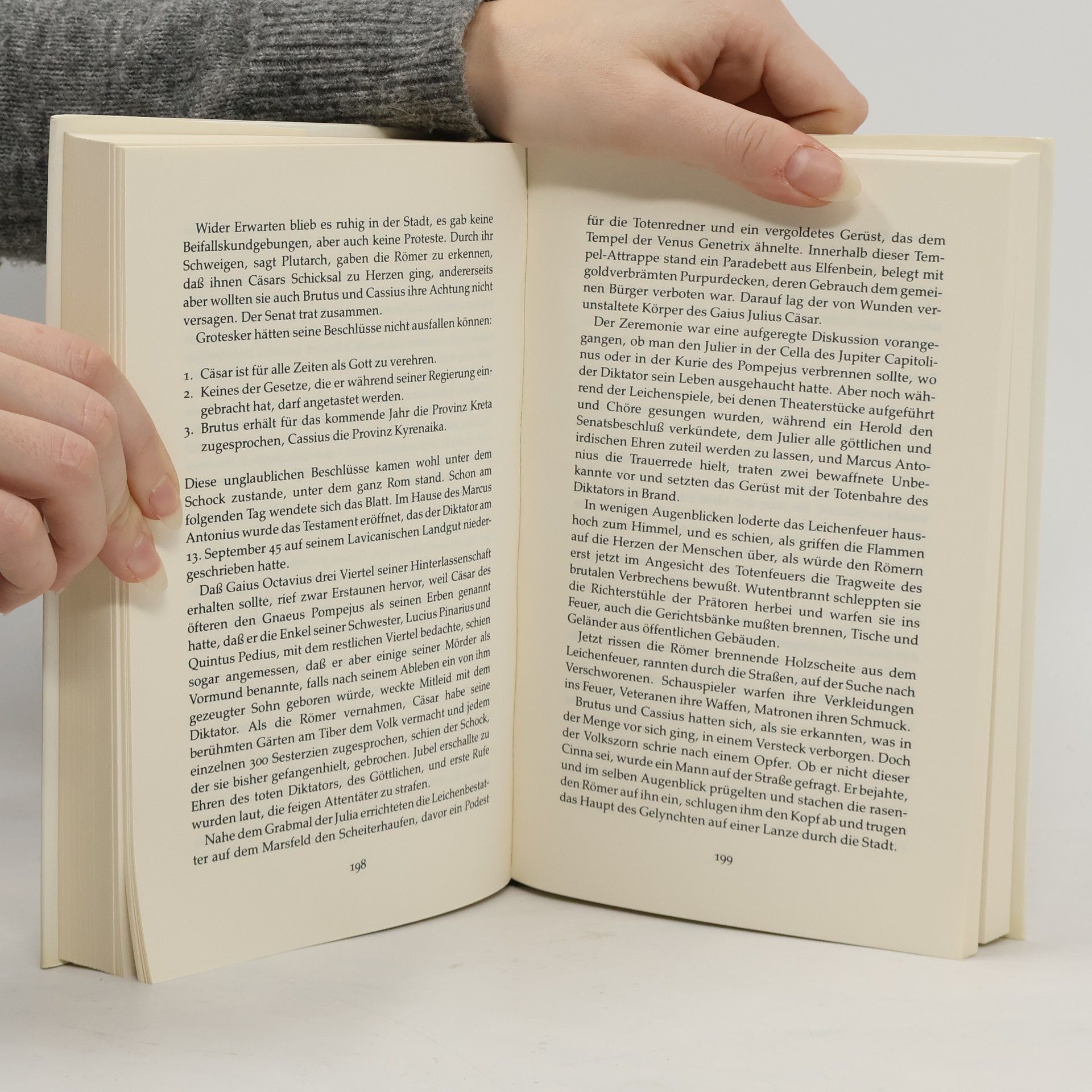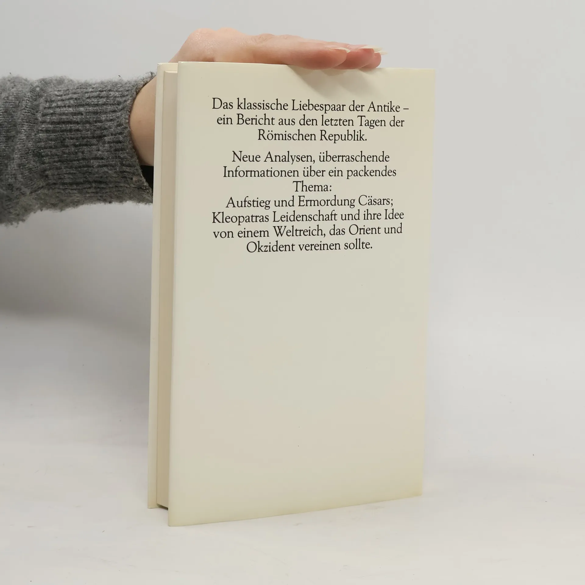 Es gibt kaum ein Liebespaar, das den Verlauf der Geschichte stärker beeinflußt hat als der römische Staatsmann Julius Cäsar und die ägyptische Pharaonin Kleopatra. Vor dem Hintergrund der politischen Ereignisse in Rom werden Cäsars Aufstieg zum Diktator, seine Feldzüge, seine Begegnung mit Kleopatra und seine Ermordung geschildert. Aber auch das Leben der ägyptische Königin fasziniert bis heute: Sie heiratete ihren Bruder, um an die Macht zu kommen, bekam zuerst von Cäsar, dann von Marcus Antonius Kinder, versuchte mit Hilfe dieser zwei Männer, ihren Traum von einem Weltreich, das Orient und Okzident vereinen sollte, zu verwirklichen und nahm sich zuletzt mit Schlangengift das Leben. Phillip Vandenberg webt in seinen packend erzählten Text immer wieder Zitate von Zeitgenossen ein. Es gelingt ihm dadurch, ein realistisches Bild von diesen zwei großen Persönlichkeiten entstehen zu lassen.