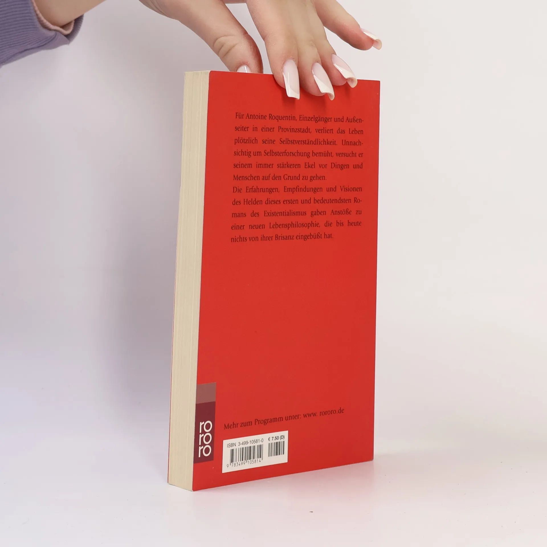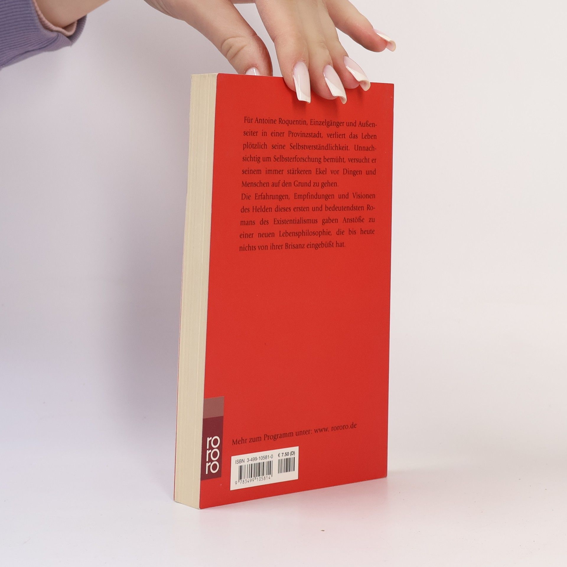 Für Antoine Roquentin, Einzelgänger und Außenseiter in einer Provinzstadt, verliert das Leben plötzlich seine Selbstverständlichkeit. Unnachsichtig um Selbsterforschung bemüht, versucht er seinem immer stärkeren Ekel vor Dingen und Menschen auf den Grund zu gehen. Die Erfahrungen, Empfindungen und Visionen des Helden dieses ersten und bedeutendsten Romans des Existentialismus gaben Anstöße zu einer neuen Lebensphilosophie, die bis heute nichts von ihrer Brisanz eingebüßt hat.