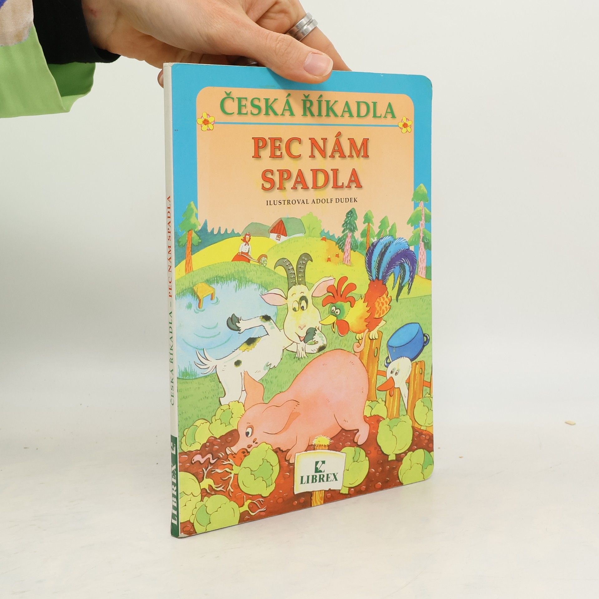 Leporelo nejznámějších říkadel pro malé děti s oblíbenými ilustracemi Adolfa Dudka.
