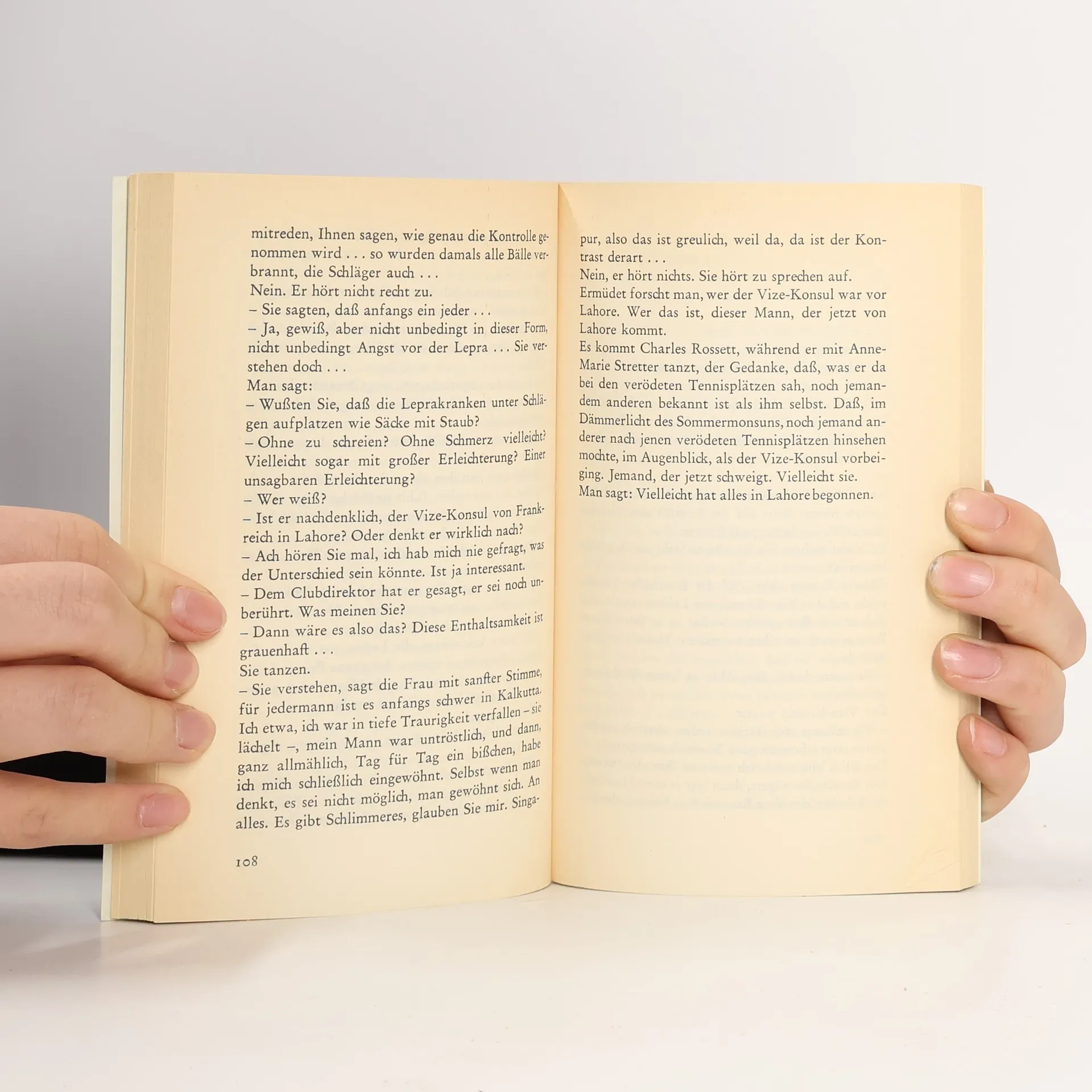»Marguerite Duras wurde 1914 in Saigon geboren und übersiedelte erst 1932 zum Studium nach Frankreich. Ihre Jugend wurde von jener Sphäre geprägt, die nun, nach Kalkutta transportiert, im Vize-Konsul wieder auftaucht: einer Enklave von Europäern inmitten eines Landes, in dem Wirren und Elend herrschen. Sie leben in der fast insularischen Abgeschlossenheit ihrer luxuriösen Villen und Parks, sie spielen Tennis, sie geben ihre Empfänge, deren Essensreste draußen an die Hungernden verteilt werden, sie sind mit ihrer Karriere, ihren Liebesgeschichten, ihren inneren Konflikten beschäftigt, sie spielen Schubert. Aber niemand scheint froh. Über allen lastet ›dieses Indien‹, dessen mörderisches naß-heißes Klima kaum durch die vielen Ventilatoren ferngehalten wird, dessen Elend bis an die Parks ihrer Villen dringt. Draußen ist die Hölle, aber drinnen, in der Enklave, die den Hungernden und Verarmten als ein fernes Paradies erscheint, schwelt unter der Oberfläche eine sonderbare Bedrückung und Melancholie. Davon handelt dieser Roman. Die Duras beherrscht – man weiß es – diese nuancierte Kunst der Schilderung, die sagt, ohne auszusprechen, die beschreibt, ohne zu sagen.« Marianne Kesting, Die Zeit