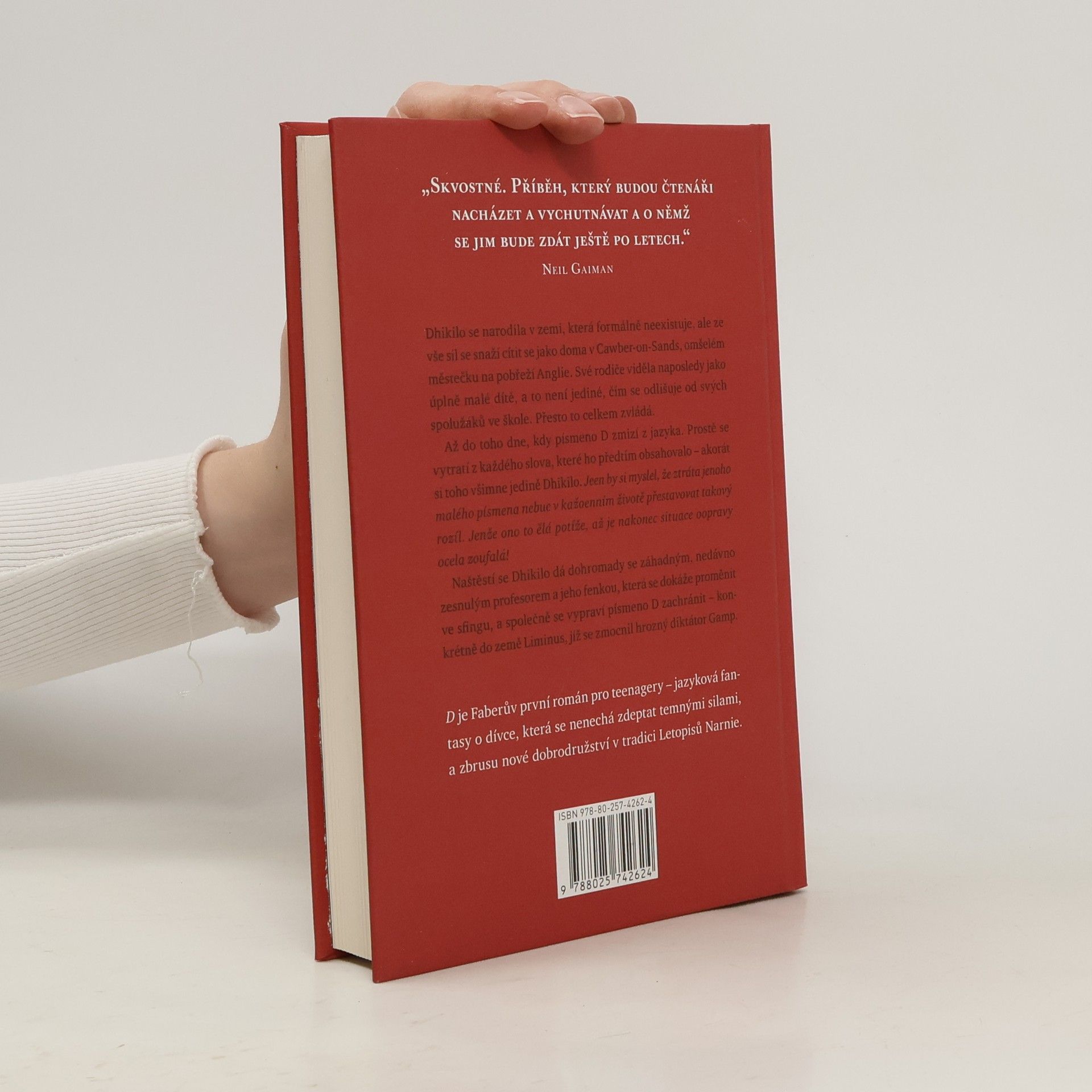 Dhikilo se narodila v zemi, která formálně neexistuje, ale snaží se cítit jako doma v Cawberon-Sands, městečku na pobřeží Anglie. Své rodiče viděla naposledy jako úplně malé dítě a to není jediné, čím se odlišuje od svých spolužáků ve škole. Vše zvládá až do dne, kdy z jazyka zmizí písmeno D. Prostě se vytratí z každého slova, které ho předtím obsahovalo – akorát si toho všimne jedině Dhikilo. Jeen by si myslel, že ztráta jenoho malého písmena nebue v kažoenním životě přestavovat takový rozíl. Jenže ono to ělá potíže, až je nakonec situace oopravy ocela zoufalá. Naštěstí se Dhikilo dá dohromady se záhadným profesorem a společně se vypraví písmeno D zachránit. Dokáže diktátorovi Gampovi zabránit ve zničení celého jazyka? A povede se jí odhalit, kdo je a kam vlastně patří? D je mnohem víc než oslava 150. výročí smrti Charlese Dickense. Umožňuje mladým čtenářům pochopit politiku 21. století i změny ve společnosti, je to inspirující příběh o dívce, která se nenechá zdeptat temnými silami, a zbrusu nové dobrodružství v tradici Narnie. D je Faberův první román pro teenagery.