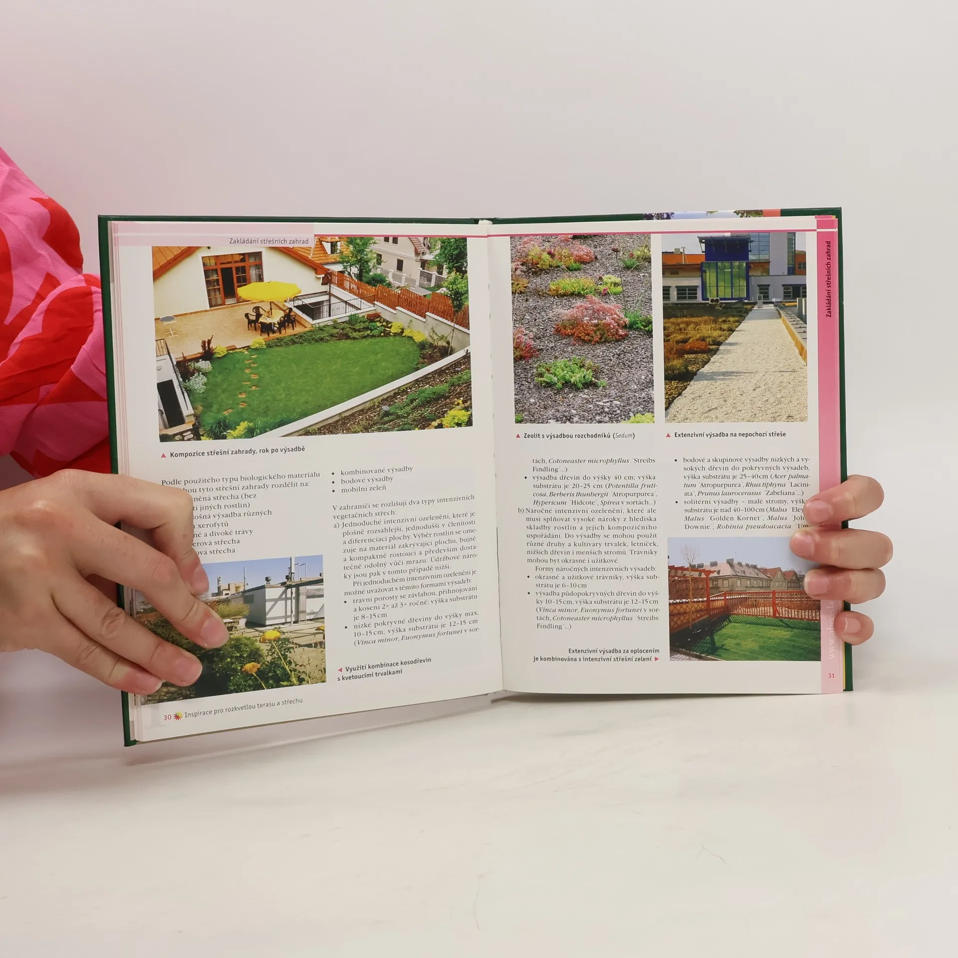 Rostlinami osázené balkóny, terasy a střechy umožňují rozšířit obytný prostor a získat příjemné místo pro odpočinek. Střešní zahrady jsou u nás zatím rozšířeny pouze na administrativních budovách, obchodních domech a hotelech. Autorka poskytuje rady jak si takovou zahradu vybudovat v rodinných domech. Seznamuje s výhodami i nevýhodami střešního osázení, správným výběrem vhodného substrátu, rostlin i nádob k osázení, výsadbou a následnou péčí.