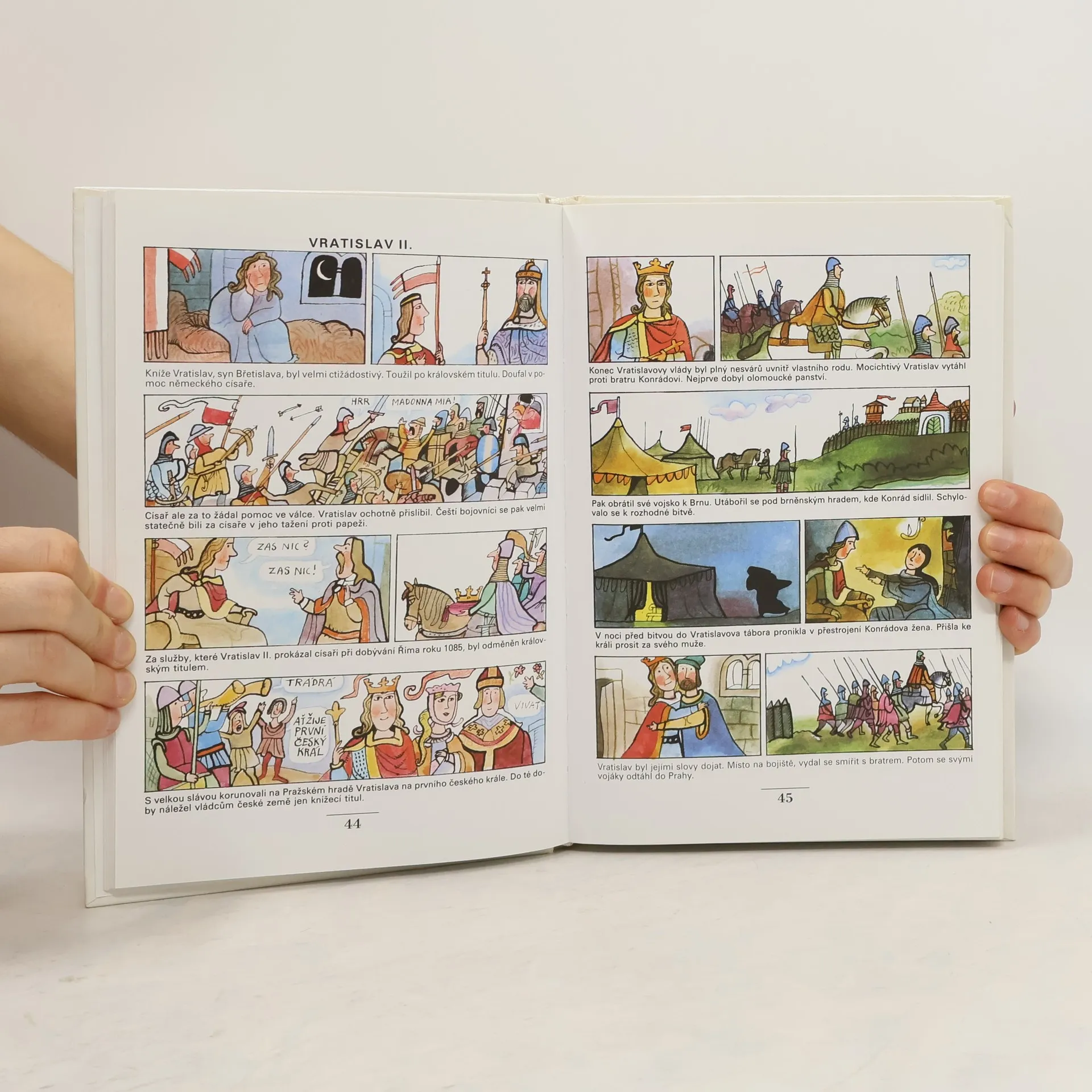 6., upravené a rozšířené vyd. Oblíbená knížka obrázkových seriálů, která hravou, humornou, ale výstižnou formou přibližuje čtenářům nejstarší i novější dějiny naší vlasti. Autoři vyprávějí o příchodu praotce Čecha, o Bivojovi, o Libušině proroctví, o Karlu IV., o Janu Husovi, o golemovi, avšak i o slavných spisovatelích, hudebních skladatelích, vědcích a vynálezcích. Knížka končí vznikem Československé republiky v roce 1918. Historii svého národa by měl znát každý člověk, a tato publikace může znamenitě pomoct k našemu poznání. Malý i velký čtenář se dozví mnohé, co ještě nevěděl, nebo si připomene, co už pozapomněl, a navíc se báječně pobaví nad krátkými texty a veselými obrázky.