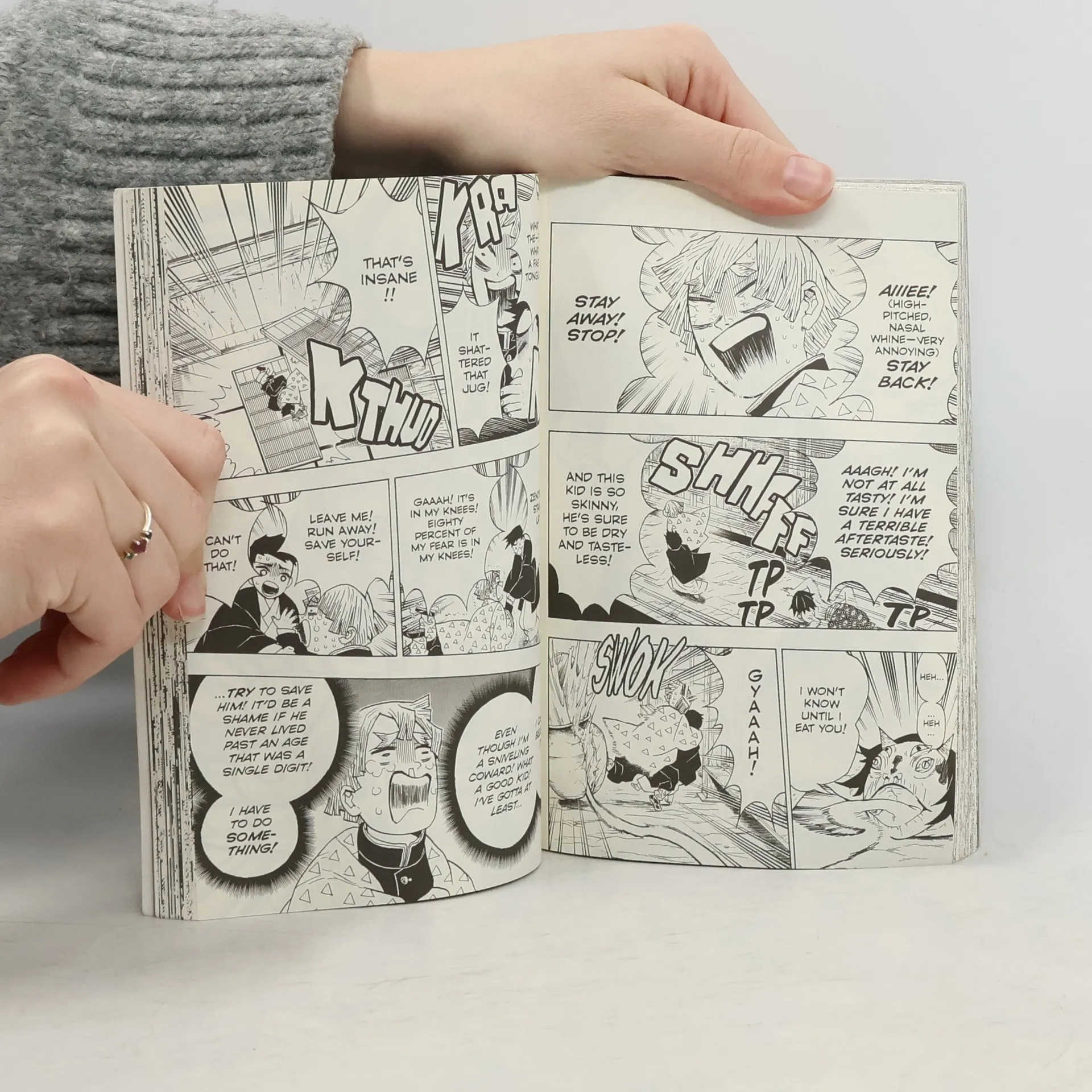 Tanjiro sets out on the path of the Demon Slayer to save his sister and avenge his family! In Taisho-era Japan, kindhearted Tanjiro Kamado makes a living selling charcoal. But his peaceful life is shattered when a demon slaughters his entire family. His little sister Nezuko is the only survivor, but she has been transformed into a demon herself! Tanjiro sets out on a dangerous journey to find a way to return his sister to normal and destroy the demon who ruined his life. Tanjiro and Nezuko cross paths with two powerful demons who fight with magical weapons. Even help from Tamayo and Yushiro may not be enough to defeat these demons who claim to belong to the Twelve Kizuki that directly serve Kibutsuji, the demon responsible for all of Tanjiro’s woes! But if these demons can be defeated, what secrets can they reveal about Kibutsuji?