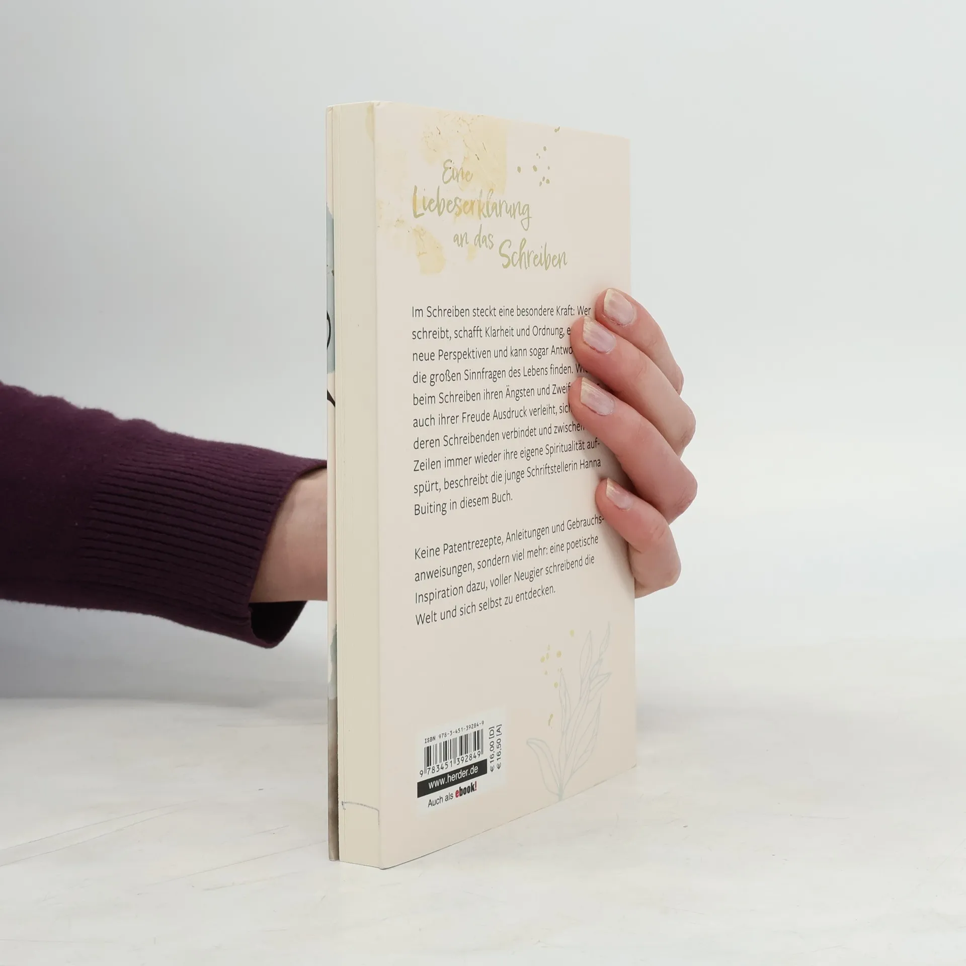 Im Schreiben steckt eine besondere Kraft: Wer schreibt, schafft Klarheit und Ordnung, entdeckt neue Perspektiven und kann sogar Antworten auf die großen Sinnfragen des Lebens finden. Wie sie beim Schreiben ihren Ängsten und Zweifeln, aber auch ihrer Freude Ausdruck verleiht, sich mit anderen Schreibenden verbindet und zwischen den Zeilen immer wieder ihre eigene Spiritualität aufspürt, beschreibt die junge Schriftstellerin Hanna Buiting in diesem Buch. Keine Patentrezepte, Anleitungen und Gebrauchsanweisungen, sondern viel mehr: eine poetische Inspiration dazu, voller Neugier schreibend die Welt und sich selbst zu entdecken.