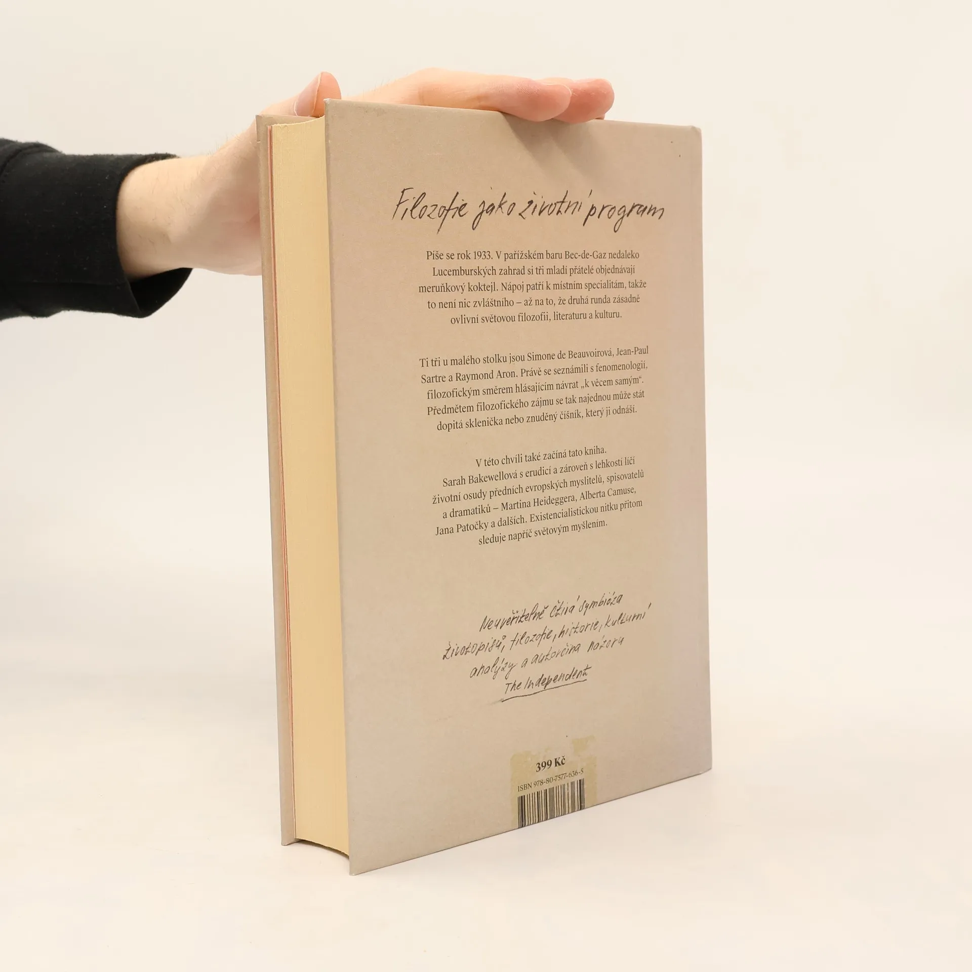 Filozofie zbavená akademických pout. Píše se rok 1933. V pařížském baru Bec-de-Gaz nedaleko Lucemburských zahrad si tři mladí přátelé objednávají meruňkový koktejl. Světle oranžový nápoj patří k místním specialitám, takže to není nic zvláštního. Až na to, že druhá runda zásadně ovlivní filozofii, literaturu a světovou kulturu. Ti tři u malého stolku jsou Simone de Beauvoir, Jean-Paul Sartre a Raymond Aron a zrovna se seznámili s fenomenologií, filozofickým směrem hlásajícím „zpátky k věcem samým“. Předmětem filozofického zájmu se tak najednou může stát dopitá sklenice nebo otrávený číšník, který ji odnáší. A právě v této chvíli začíná také kniha Sarah Bakewellové, která s erudicí a zároveň s lehkostí líčí životní osudy předních evropských myslitelů, spisovatelů a dramatiků — Martina Heideggera, Alberta Camuse, Jana Patočky a dalších — a přitom sleduje existencialistickou nitku ve světovém myšlení. Top Ten 2016 podle The New York Times, kniha roku v The Guardian, Times Literary Supplement, The Observer a dalších. ---- Vřelé a zároveň intelektuálně neústupné… možná nejlepší aforismus shrnující celou knihu pochází přímo od Bakewellové: „Myšlení by mělo být velkorysé a mít dobrý apetit." - Financial Times Neuvěřitelně čtivá kombinace životopisů, filozofie, historie, kulturní analýzy a vlastního názoru. - The Independent