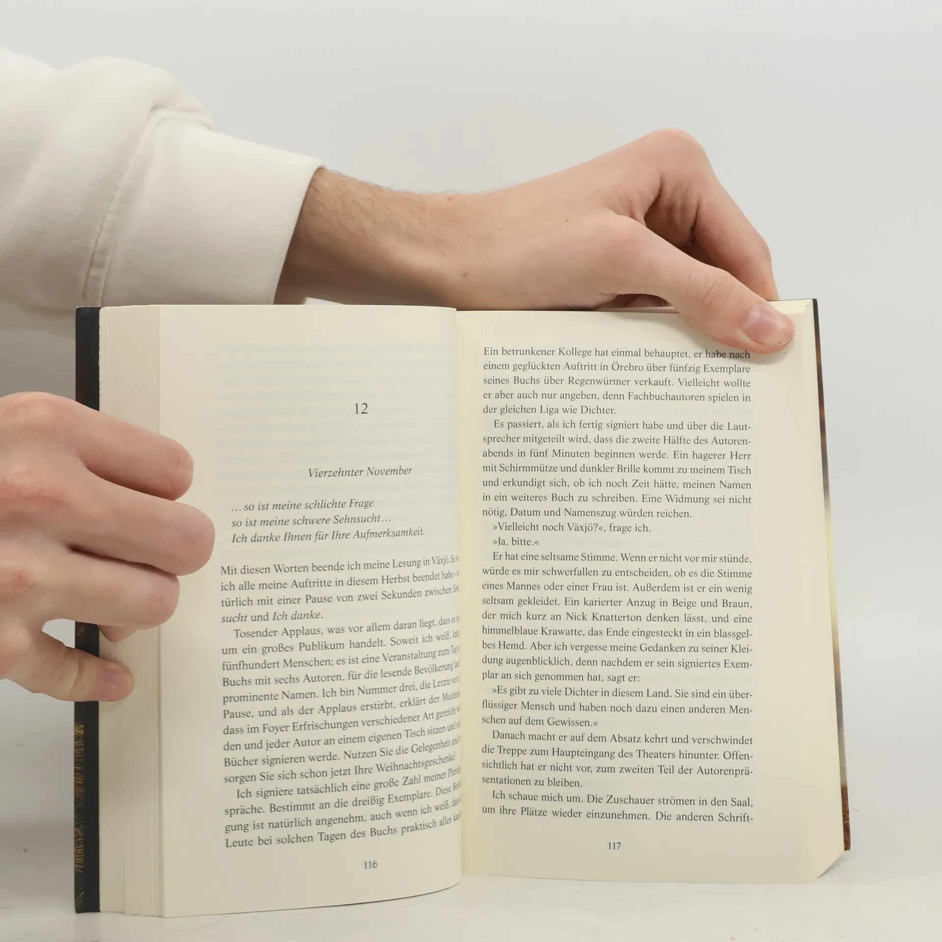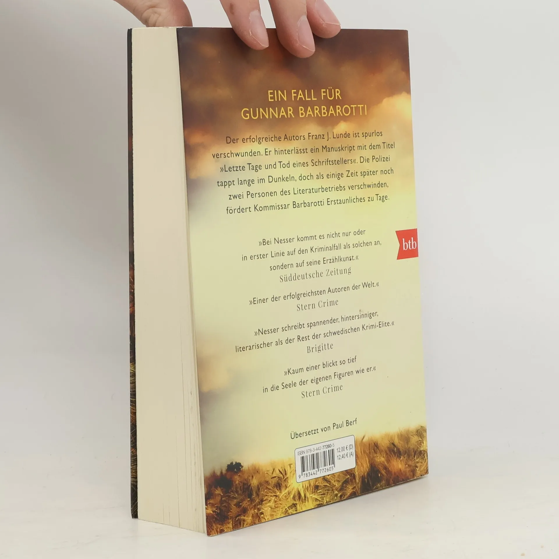 Die Leser des erfolgreichen Autors Franz J. Lunde sind sich sicher: Wer einen Mord so schildert, muss ihn selbst begangen haben. Lunde, der an einem Manuskript mit dem Titel »Letzte Tage und Tod eines Schriftstellers« arbeitet, fühlt sich von seinem Publikum bedroht. Nach einer Lesung in Kymlinge ist er plötzlich spurlos verschwunden. Kurze Zeit später wird die bekannte Lyrikerin Maria Green vermisst. Auch sie hinterlässt ein rätselhaftes Schriftfragment. Die Polizei tappt im Dunklen, bis ein halbes Jahr später der Autor und Literaturkritiker Jack Walde unauffindbar ist. Was verband diese drei Schriftsteller? Was ist ihnen zugestoßen? Kommissar Barbarotti fördert trotz erschwerter Bedingungen Erstaunliches zu Tage.