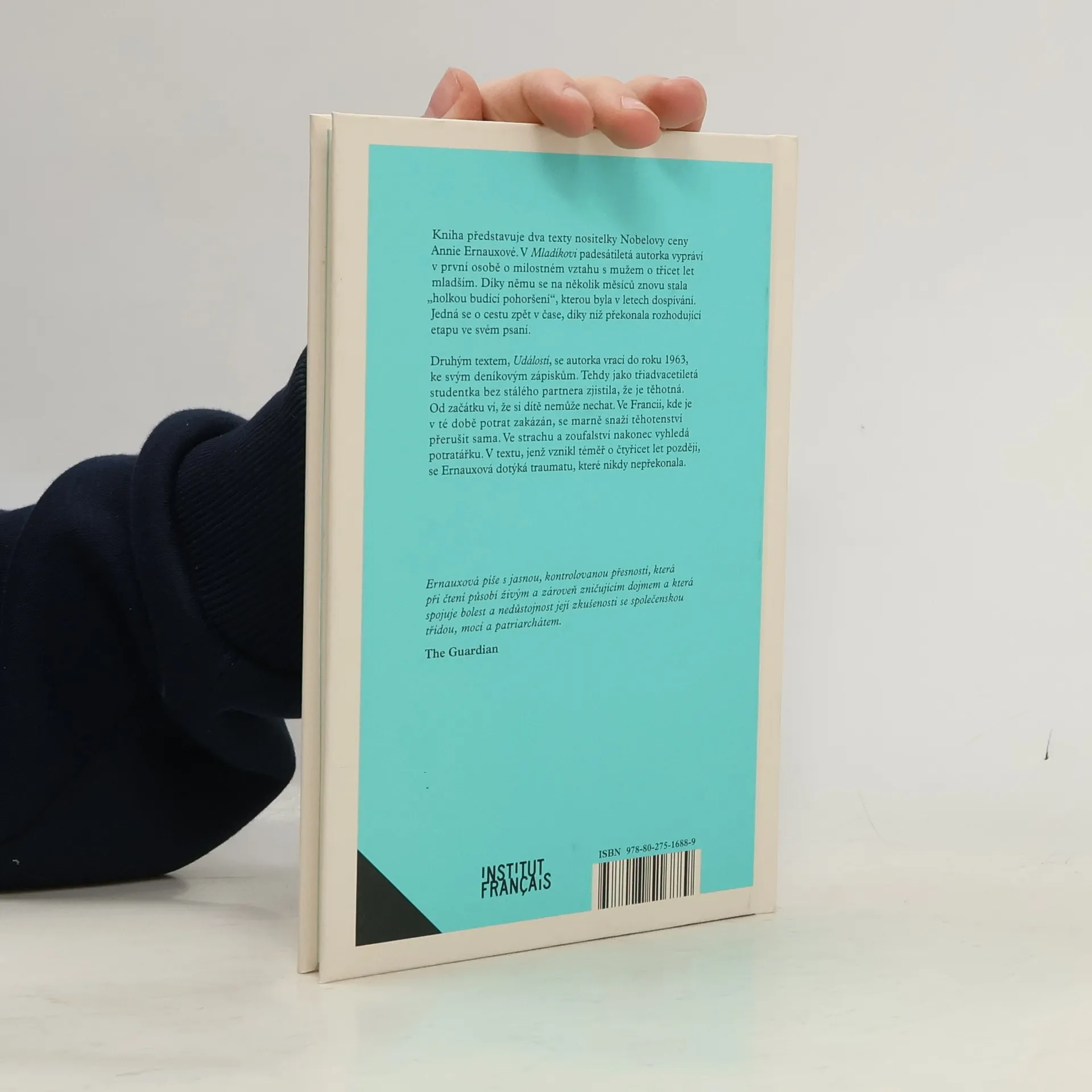 Kniha představuje dva texty nositelky Nobelovy ceny Annie Ernauxové. Mladík (2022) je vyprávěním padesátileté spisovatelky o vášnivém milostném vzplanutí k muži, který je o třicet let mladší než ona. Vztah v ní vyvolává vzpomínky na vlastní mládí a zároveň pocity, jako by se nacházela mimo čas, nestárla nebo žila svůj život pozpátku. Druhým textem, Událostí (2000), se autorka vrací do roku 1963, ke svým deníkovým zápiskům; tehdy ve svých třiadvaceti letech jako svobodná žena zjistila, že je těhotná. Začne ji sžírat stud: chápe, že těhotenství by ji i její rodinu společensky zničilo, a zároveň ví, že si dítě nemůže nechat. Ve Francii, kde je potrat zakázaný, se marně snaží potratit za pomocí pletací jehlice. Ve strachu a zoufalství nakonec vyhledá potratáře a skončí na pohotovosti v nemocnici, kde málem přijde o život. V textu, který vznikl o čtyřicet let později, se Ernauxová dotýká traumatu, jež nikdy nepřekonala.