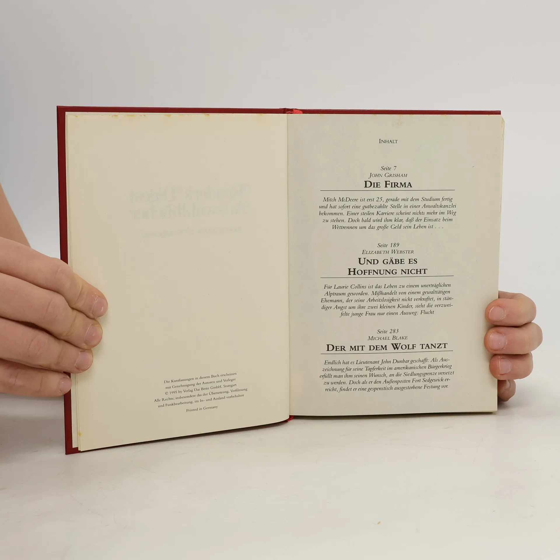 Reader's Digest. Die Firma. Und gäbe es Hoffnung nicht. Der mit dem Wolf tanzt, John Grisham, Michael Blake, Elizabeth Webster