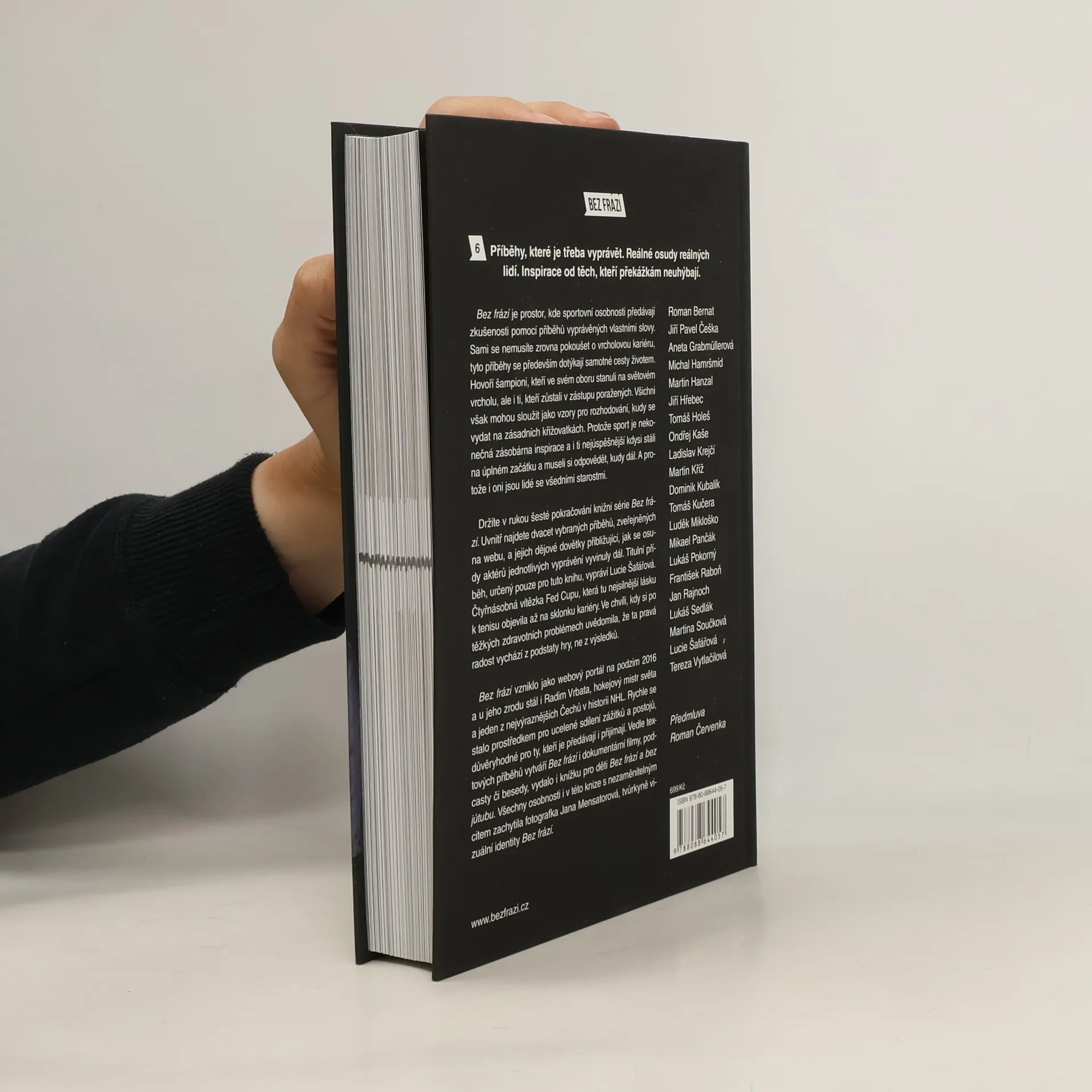 Šesté pokračování knižní řady Bez frází přináší 21 inspirativních příběhů od sportovních osobností, doplněných o jedinečné dějové dovětky. Mezi nimi se nachází exkluzivní příběh tenistky Lucie Šafářové, čtyřnásobné vítězky Fed Cupu. Kniha se dotýká různých témat, jako jsou sexuální zneužívání, těžké úrazy, změna pohlaví, úzkosti ve vrcholovém sportu, syndrom RED-S a pokusy o sebevraždu. Příběhy, které byly dříve publikovány na webu Bez frází, jsou nyní obohaceny o dovětky, v nichž vypravěči reflektují, jak se jejich životy vyvinuly od doby vydání. Lucie Šafářová ve svém příběhu "Bonus" popisuje svou cestu od dětství k vrcholu tenisového světa a klíčové momenty své kariéry. Vzpomíná na to, jak jí autoimunitní onemocnění pomohlo pochopit skutečnou lásku k tenisu, když ji na čas připravilo o možnost normálně se hýbat. Mezi dalšími vypravěči najdeme sportovce z různých disciplín, jako jsou atletika, triatlon, MMA, hokej, fotbal a cyklistika, kteří sdílejí své autentické a inspirativní příběhy.