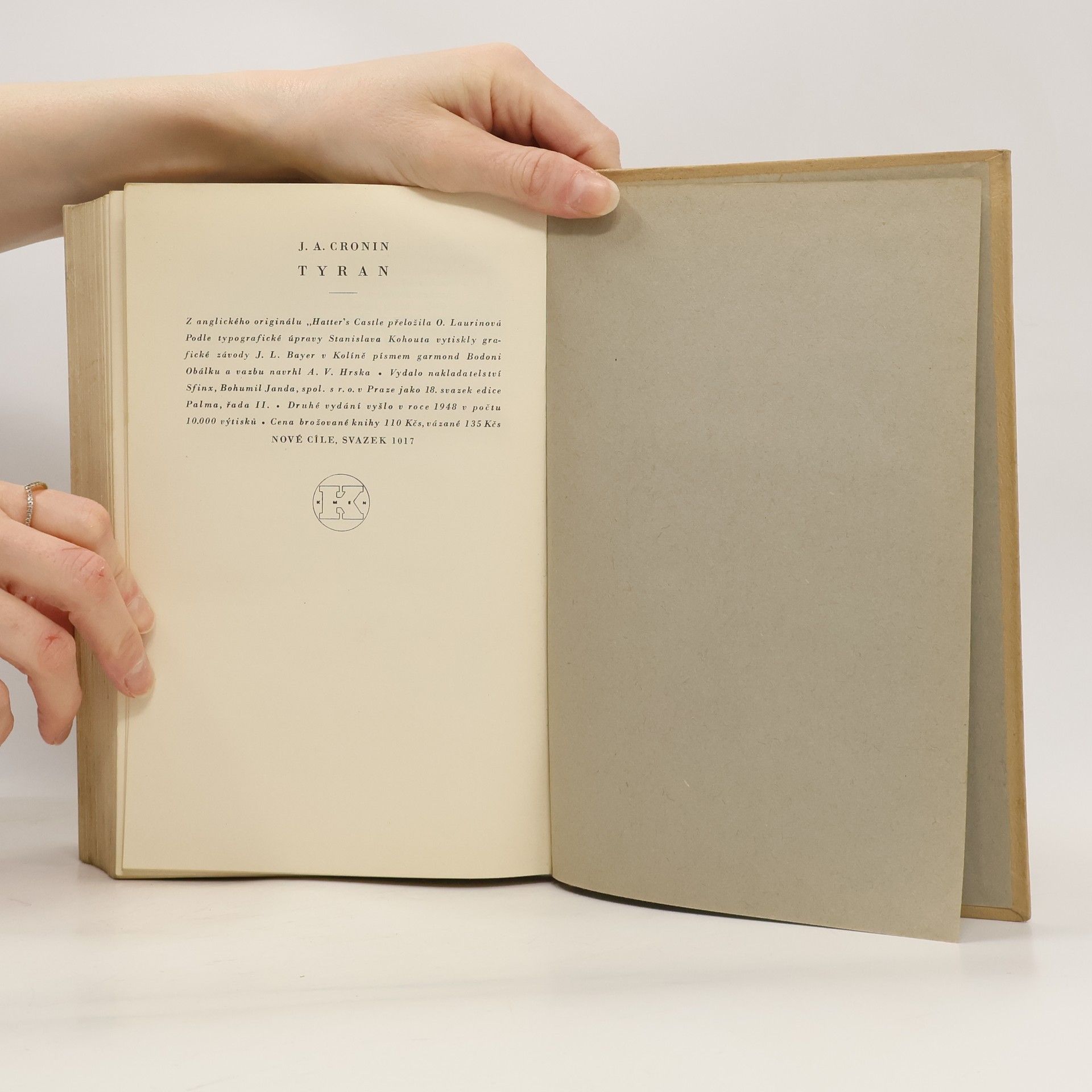 Vydalo nakladatelství Sfinx, Bohumil Janda, spol. s r. o. v Praze jako 18. svazek edice Palma, řada II. Druhé vydání v roce 1948. Edice Nové cíle, svazek 1017.