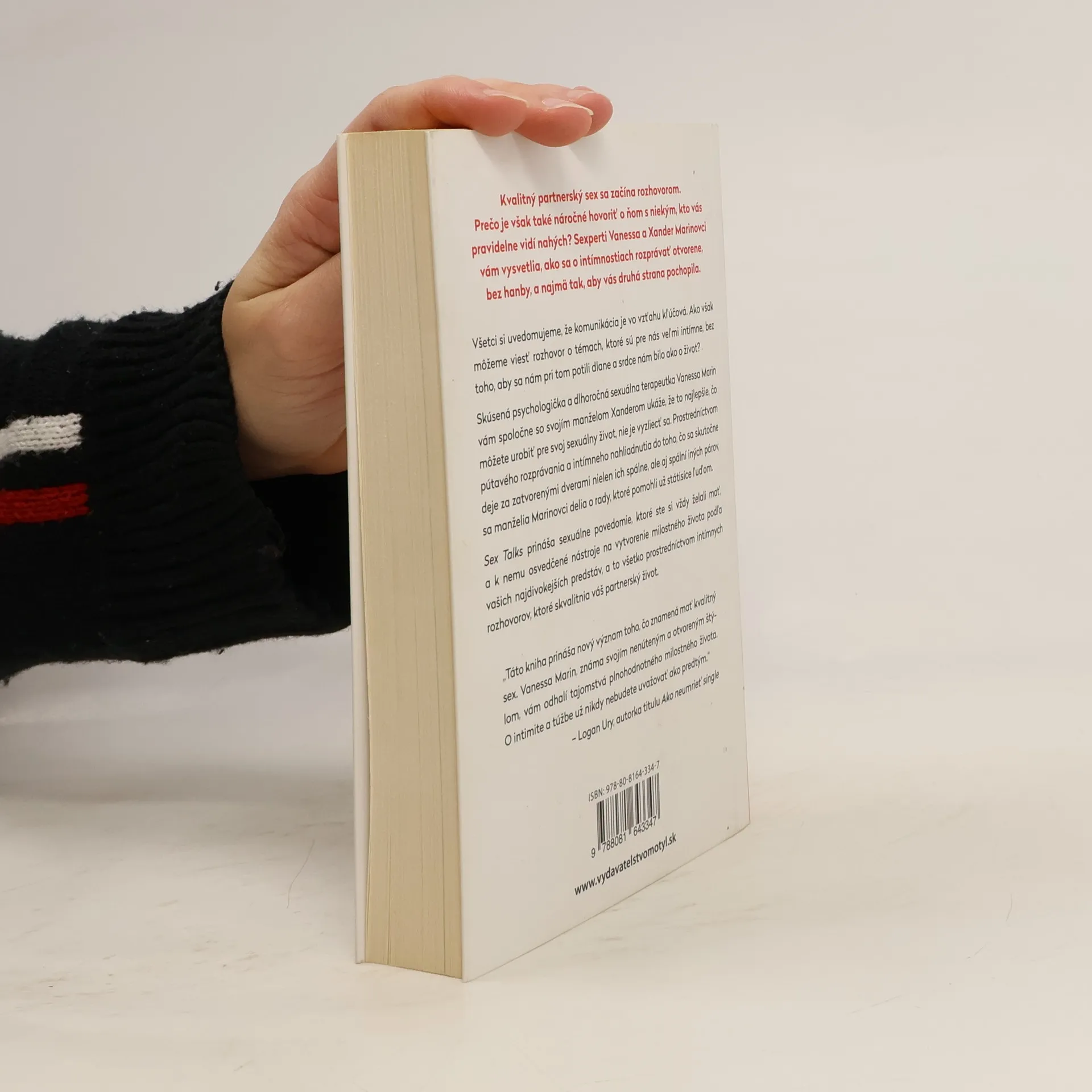 Kvalitný partnerský sex sa začína rozhovorom. Prečo je však také náročné hovoriť o ňom s niekým, kto vás pravidelne vidí nahých?Sexperti Vanessa a Xander Marinovci vám vysvetlia, ako sa o intímnostiach rozprávať otvorene, bez hanby, a najmä tak, aby vás druhá strana pochopila. Všetci si uvedomujeme, že komunikácia je vo vzťahu kľúčová. Ako však môžeme viesť rozhovor otémach, ktoré sú pre nás veľmi intímne, bez toho, aby sa nám pri tom potili dlane a srdce nám bilo ako o život?Skúsená psychologička a dlhoročná sexuálna terapeutka Vanessa Marin vám spoločne so svojím manželom Xanderom ukáže, že to najlepšie, čo môžete urobiť pre svoj sexuálny život, nie je vyzliecť sa. Prostredníctvom pútavého rozprávania a intímneho nahliadnutia do toho, čo sa skutočne deje za zatvorenými dverami nielen ich spálne, ale aj spální iných párov, sa manželia Marinovci delia o rady, ktoré pomohli už státisíce ľuďom.Sex Talks prináša sexuálne povedomie, ktoré ste si vždy želali mať, a k nemu osvedčené nástroje na vytvorenie milostného života podľa vašich najdivokejších predstáv, a to všetko prostredníctvom intímnych rozhovorov, ktoré skvalitnia váš partnerský život.